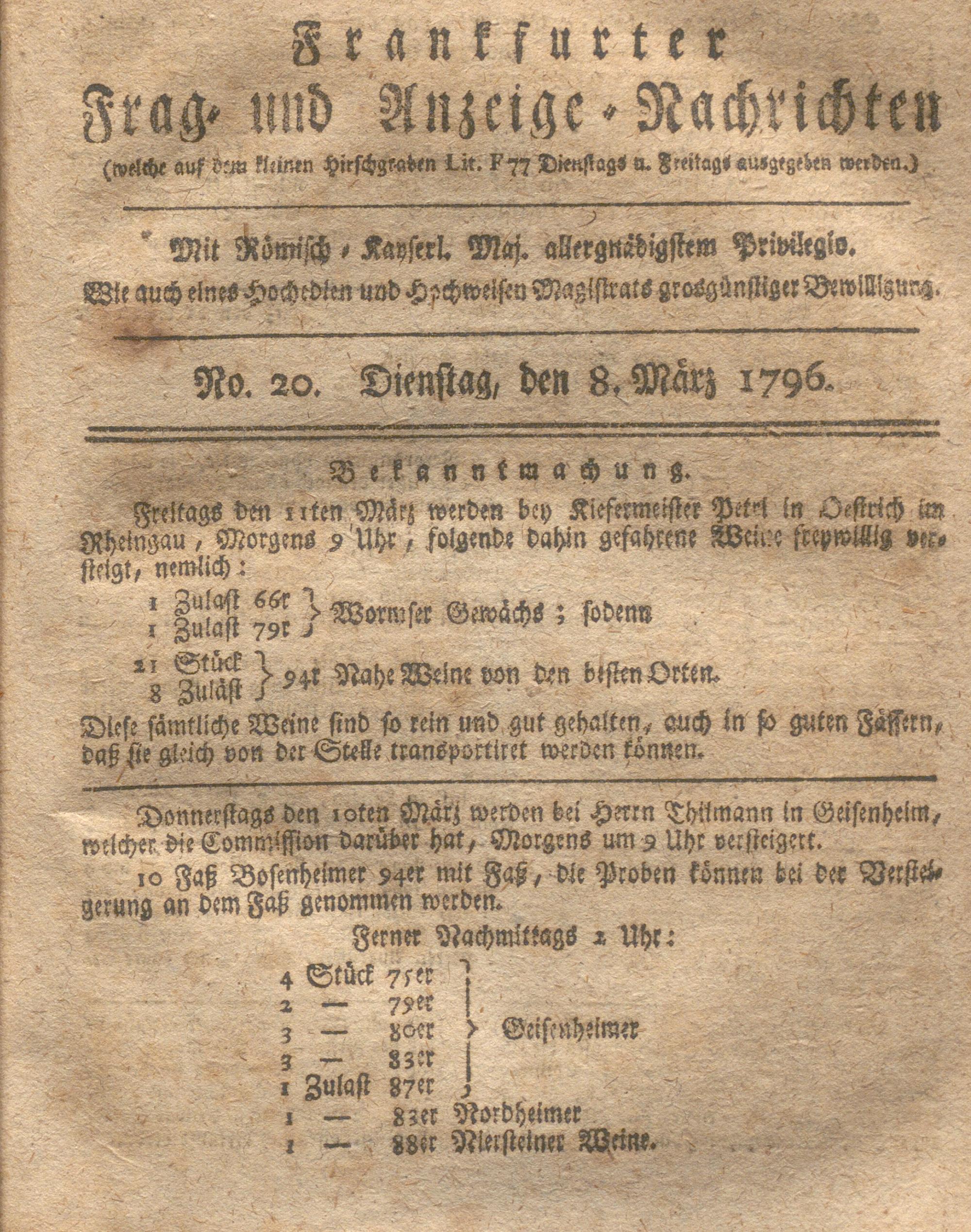 Franckfurter Frag- und Anzeige-Nachricht...