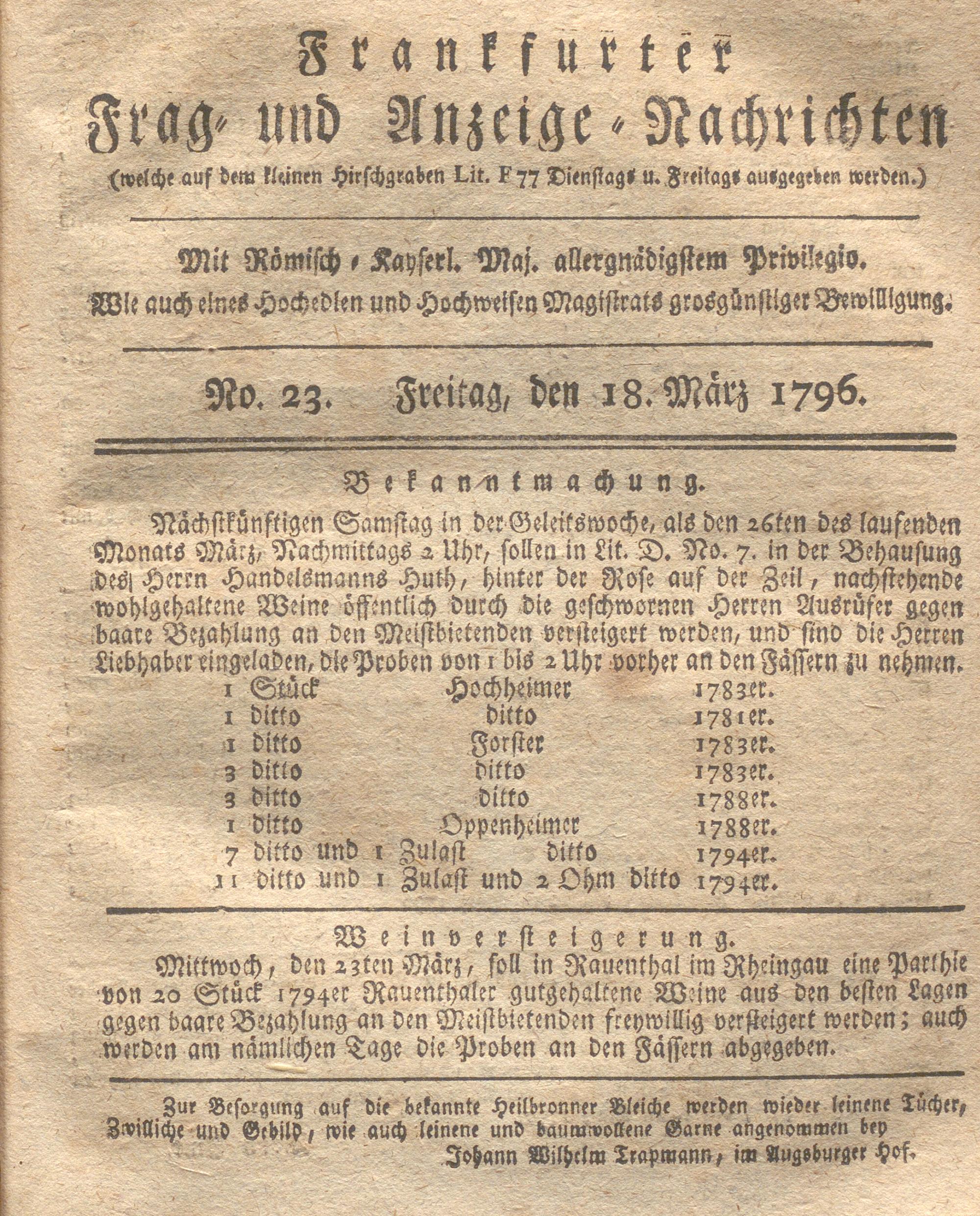 Franckfurter Frag- und Anzeige-Nachricht...