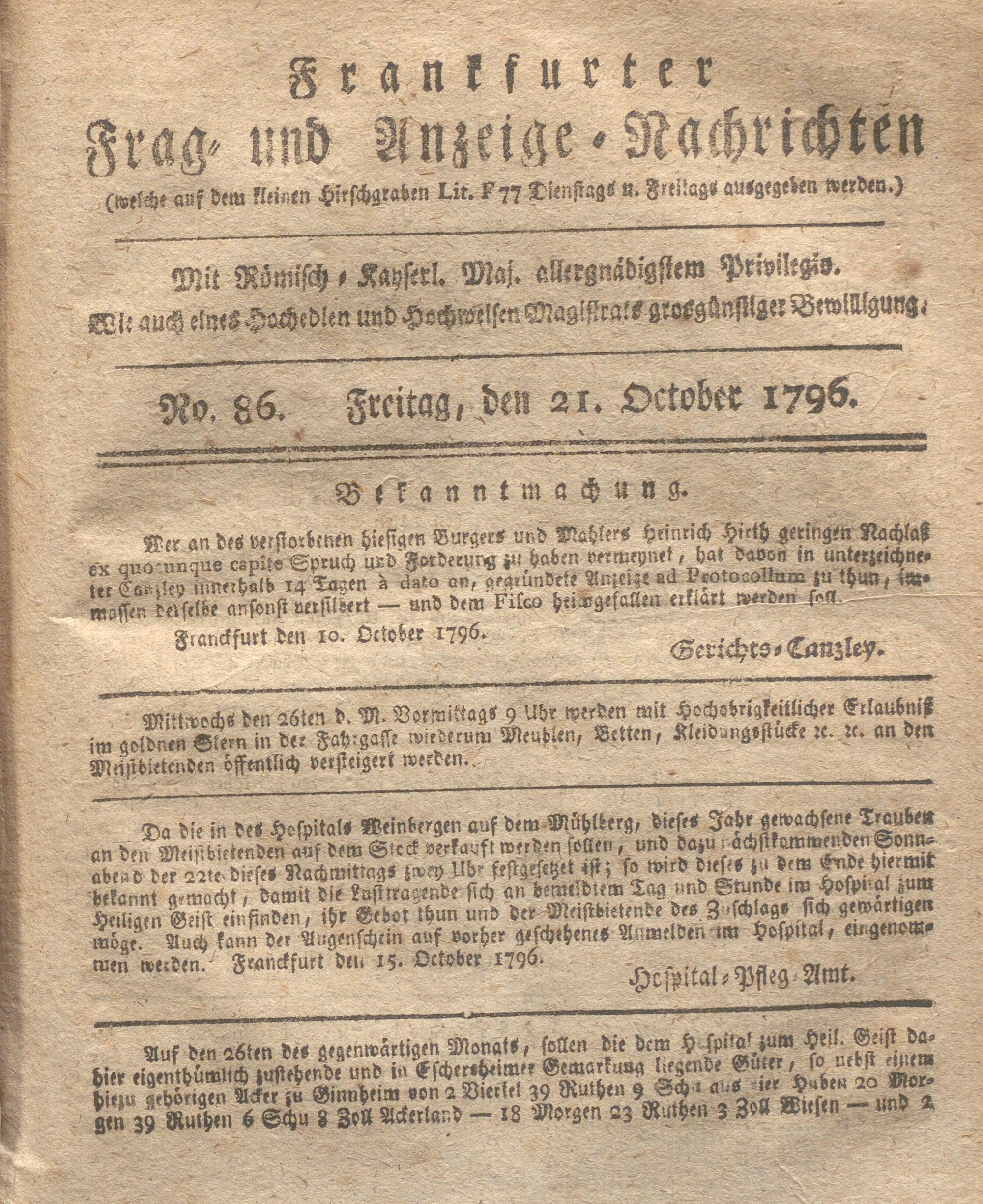 Franckfurter Frag- und Anzeige-Nachricht...
