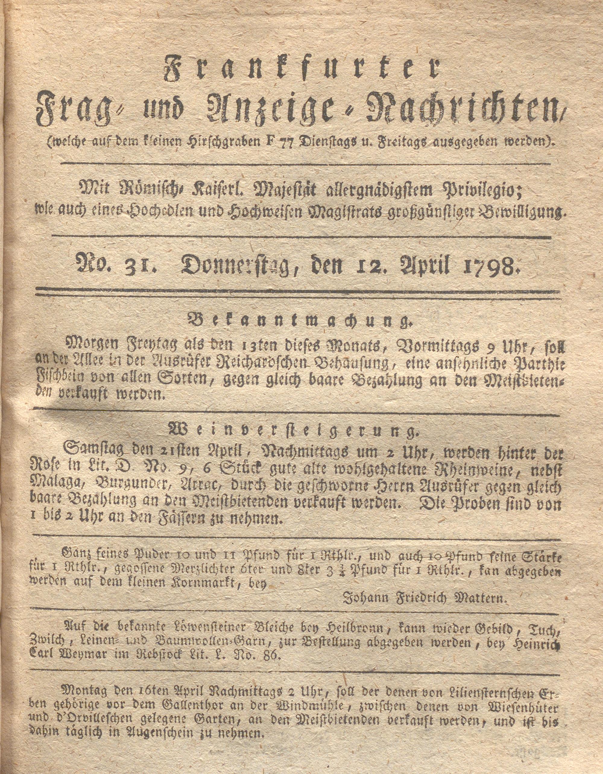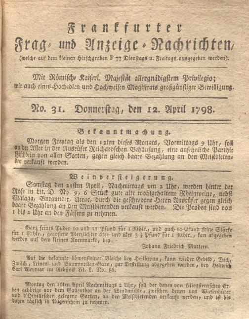 Franckfurter Frag- und Anzeige-Nachricht...