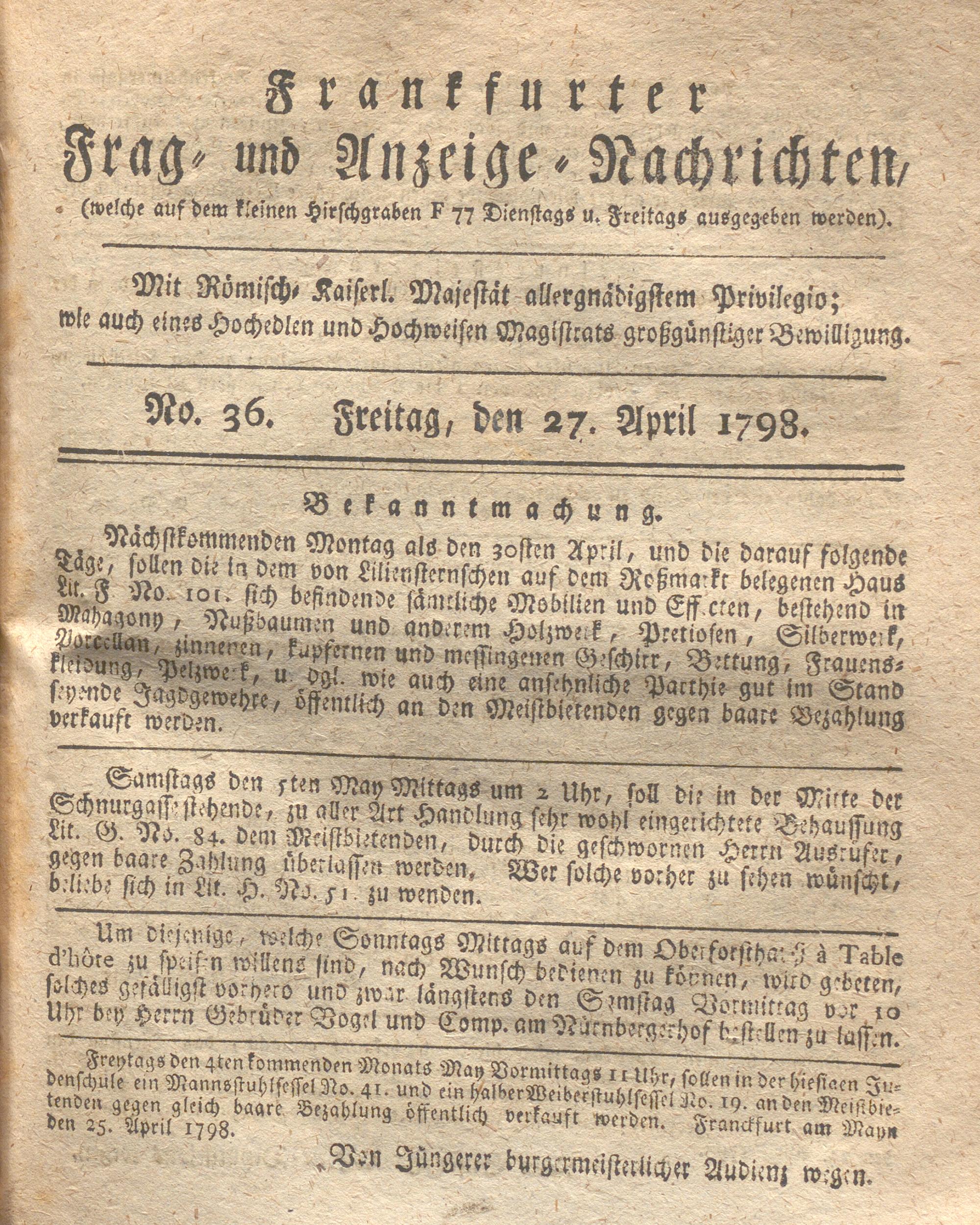 Franckfurter Frag- und Anzeige-Nachricht...
