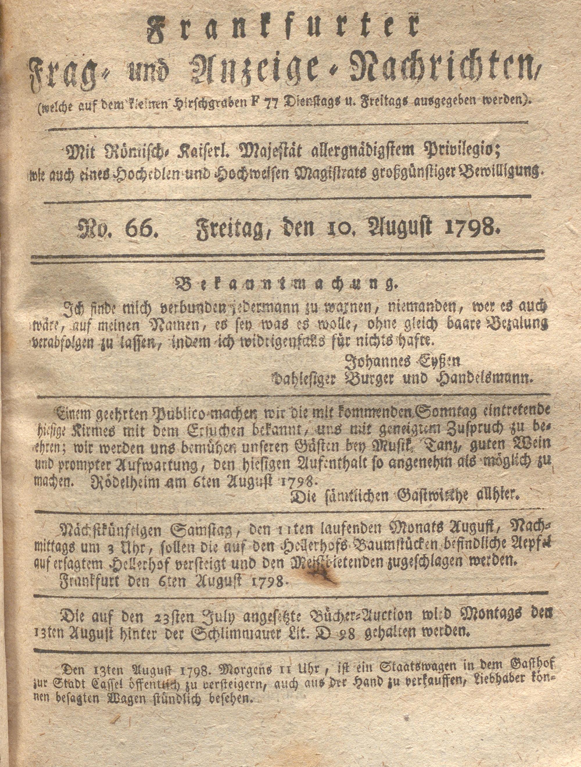 Franckfurter Frag- und Anzeige-Nachricht...