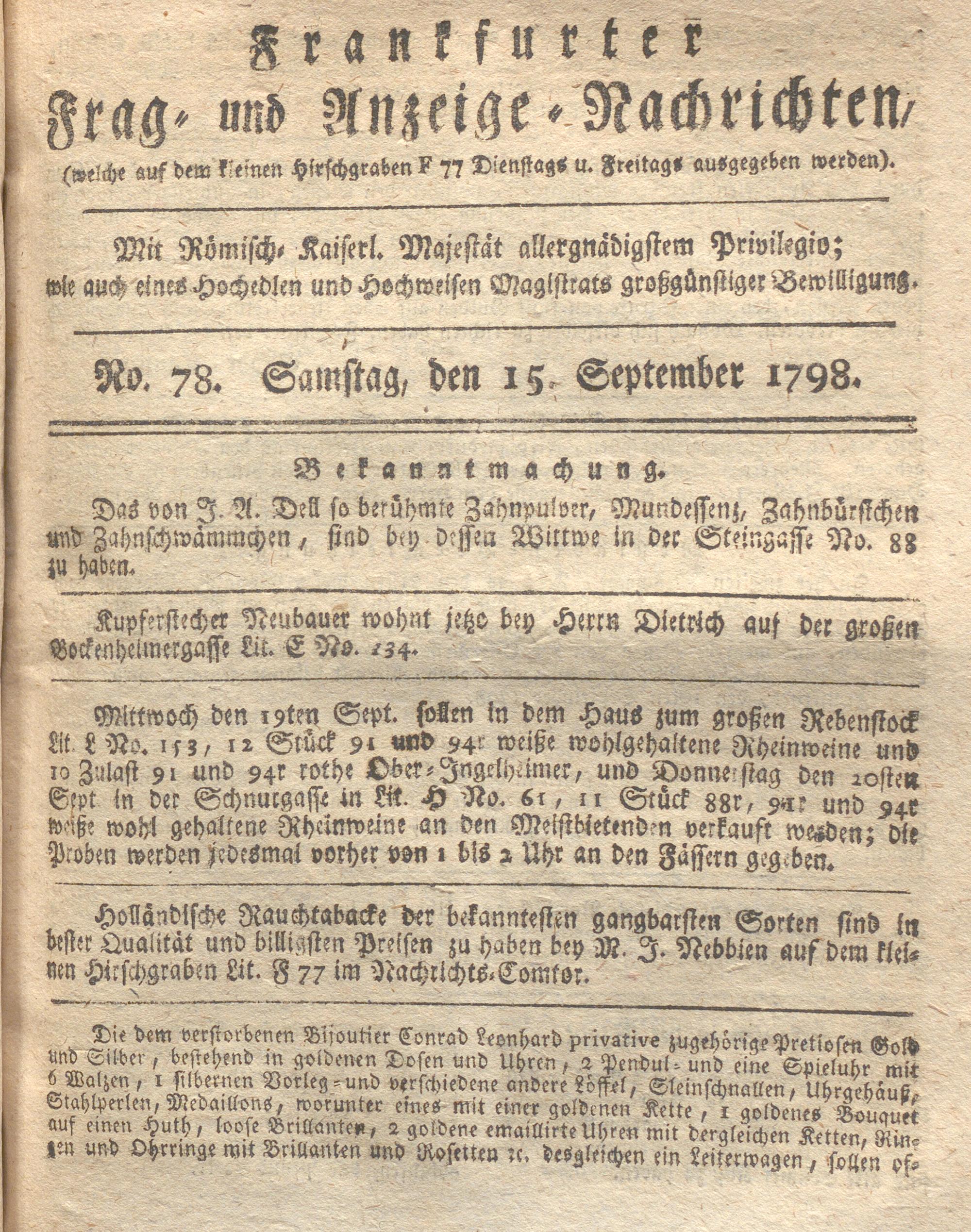 Franckfurter Frag- und Anzeige-Nachricht...