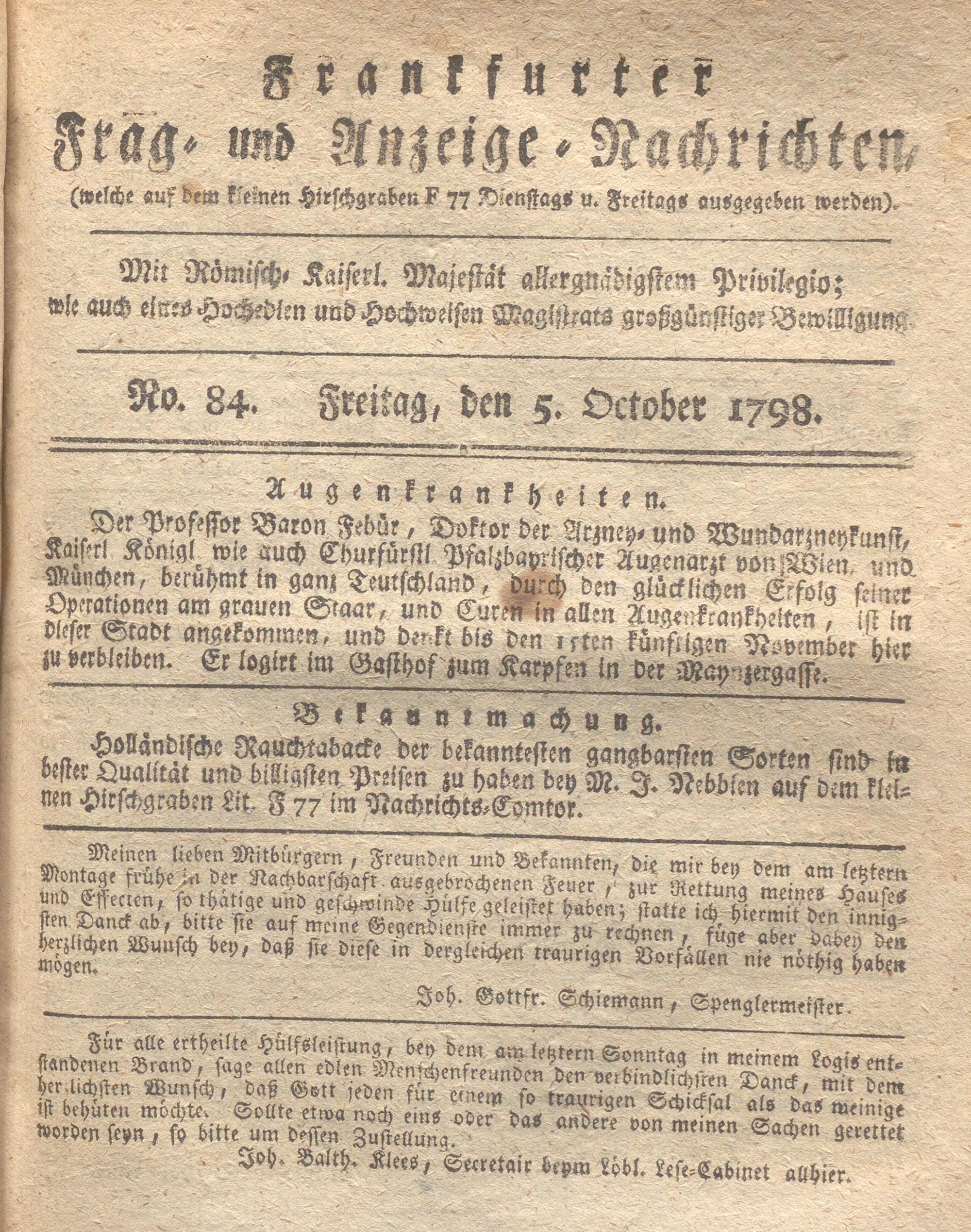 Franckfurter Frag- und Anzeige-Nachricht...