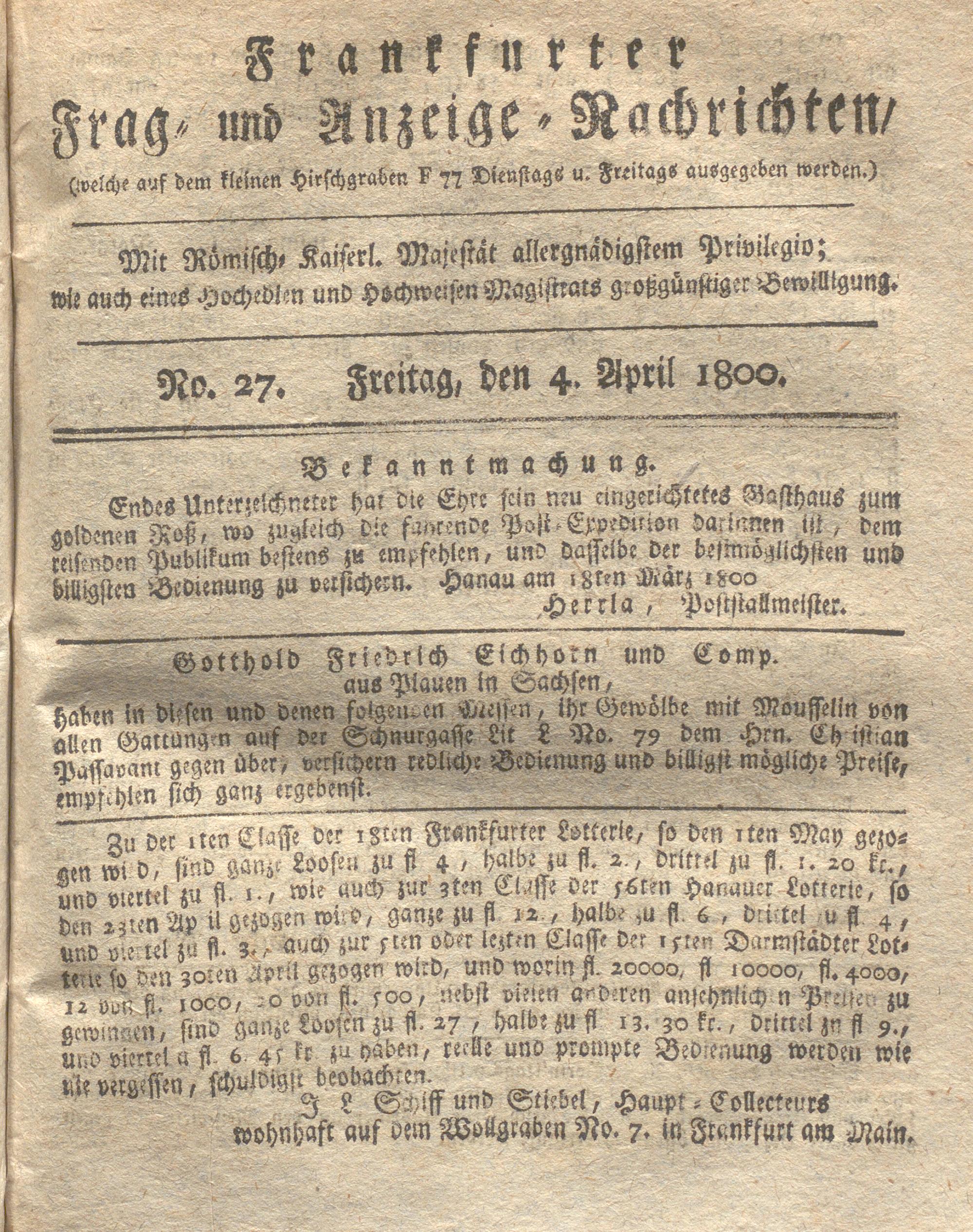 Franckfurter Frag- und Anzeige-Nachricht...