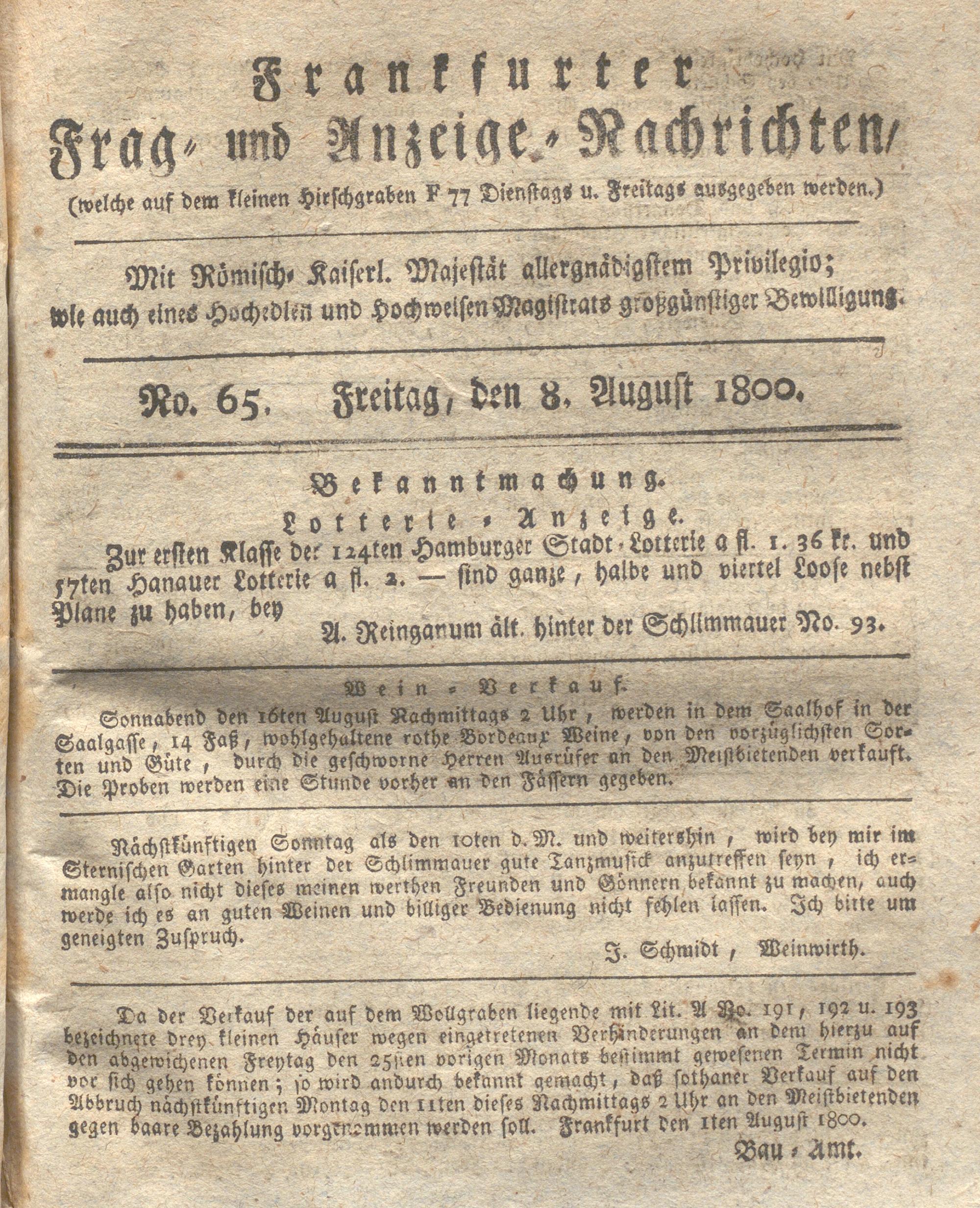 Franckfurter Frag- und Anzeige-Nachricht...
