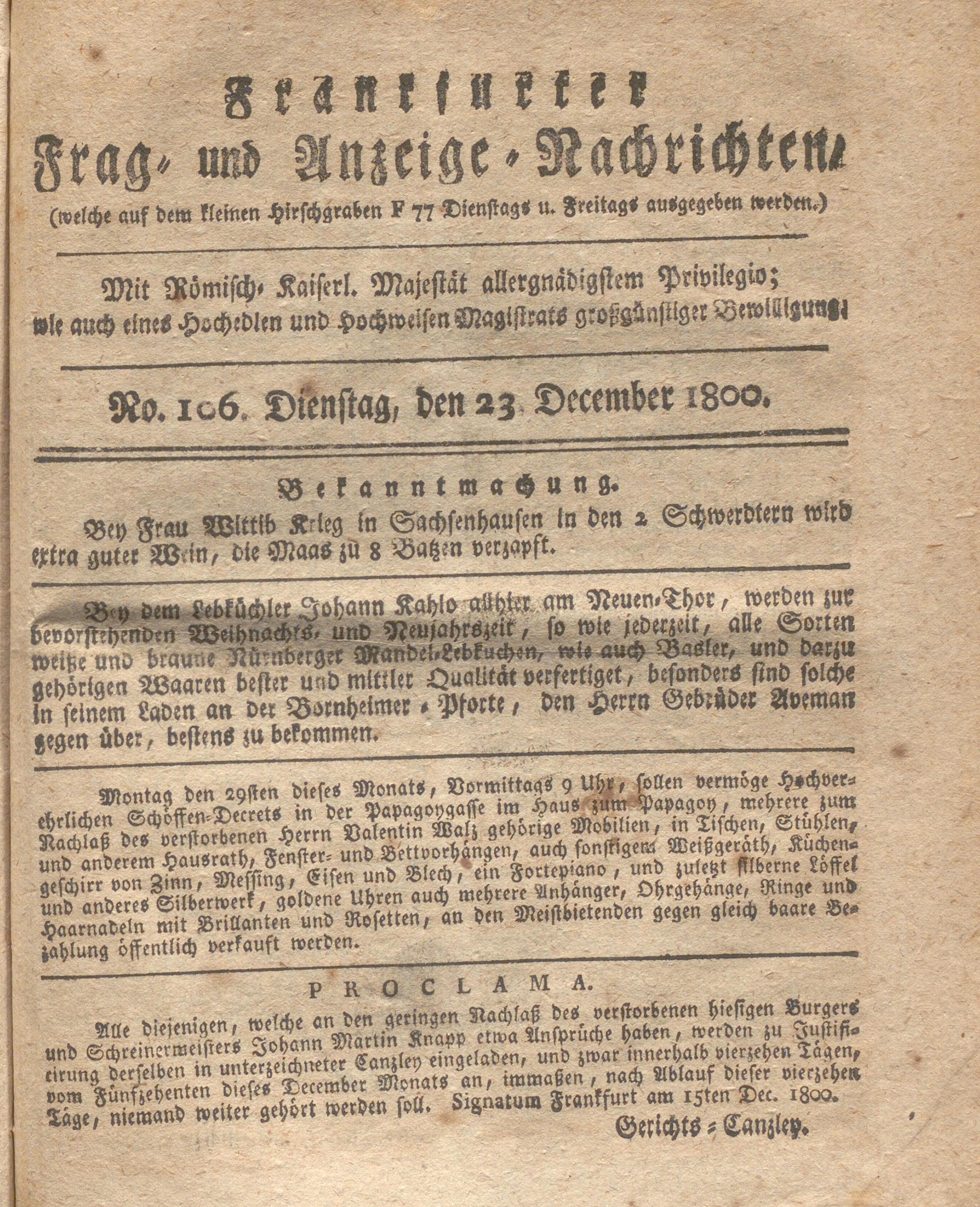 Franckfurter Frag- und Anzeige-Nachricht...