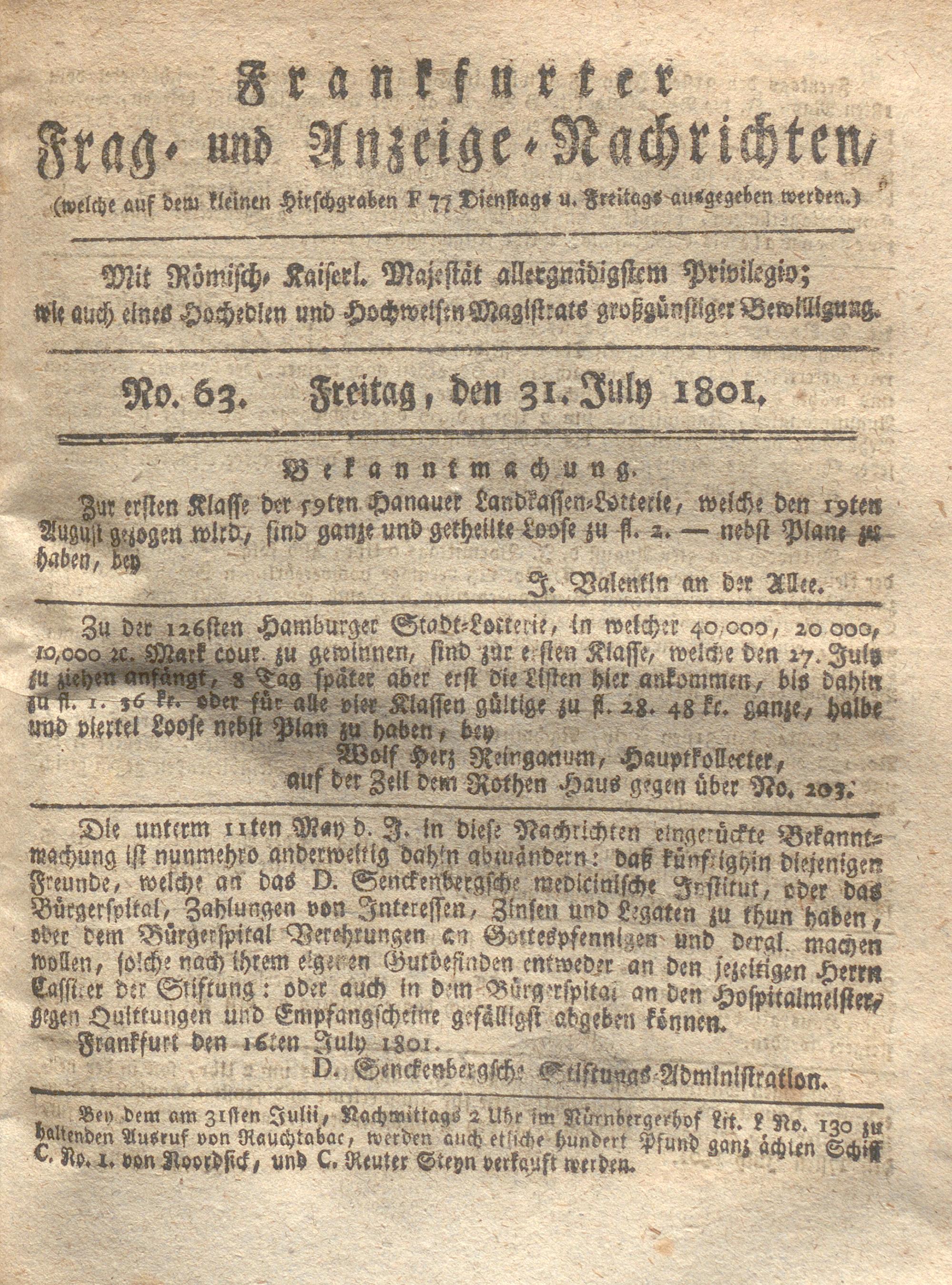 Franckfurter Frag- und Anzeige-Nachricht...