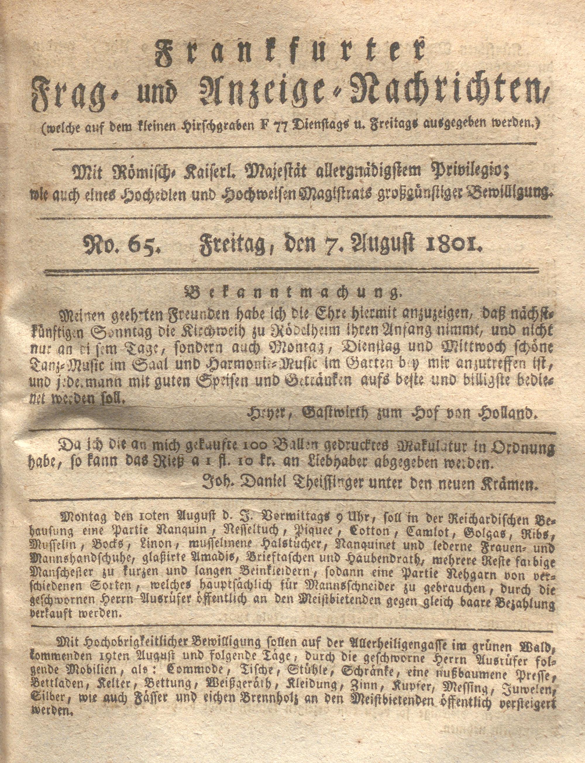 Franckfurter Frag- und Anzeige-Nachricht...