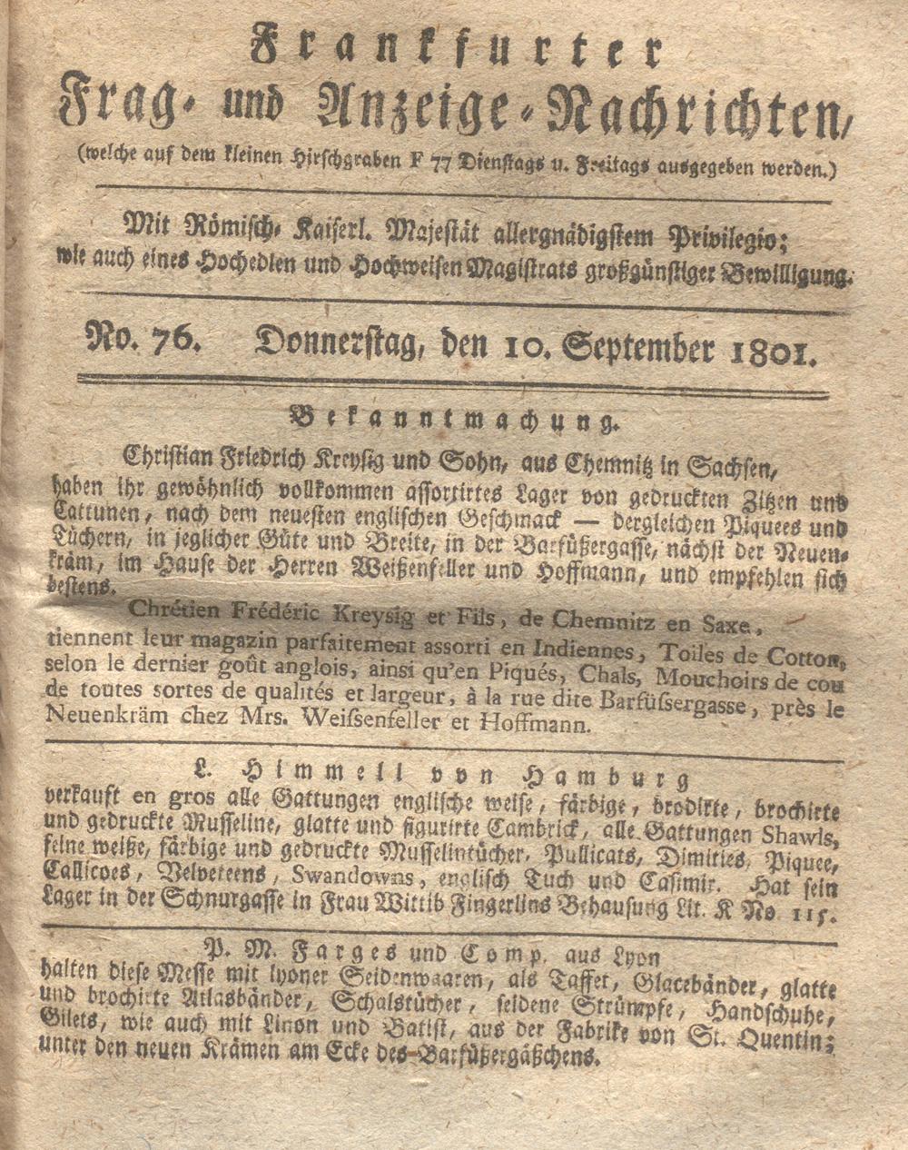 Franckfurter Frag- und Anzeige-Nachricht...