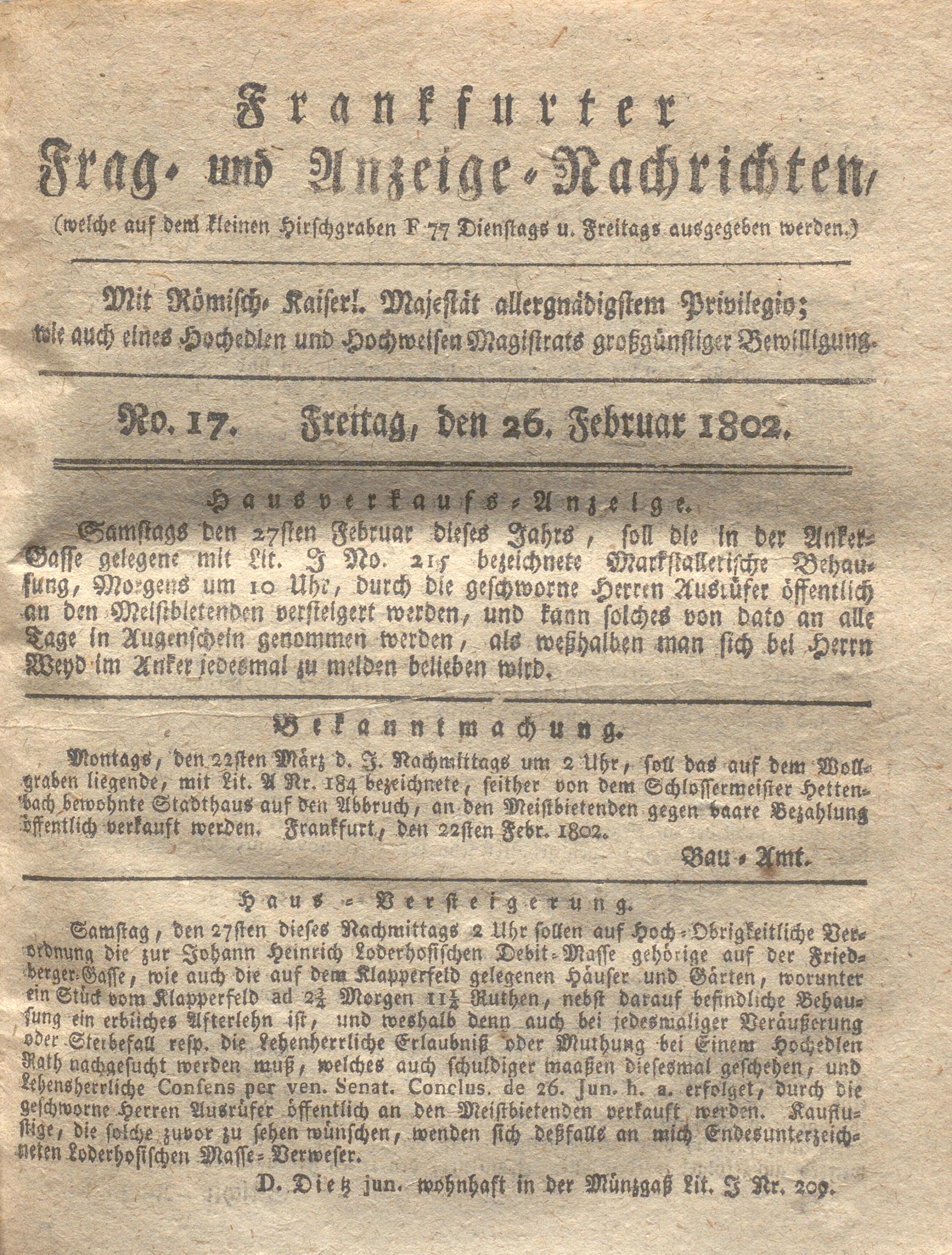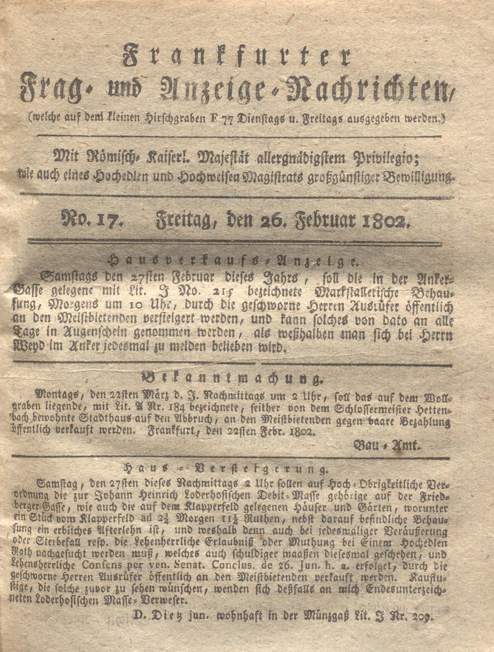 Franckfurter Frag- und Anzeige-Nachricht...