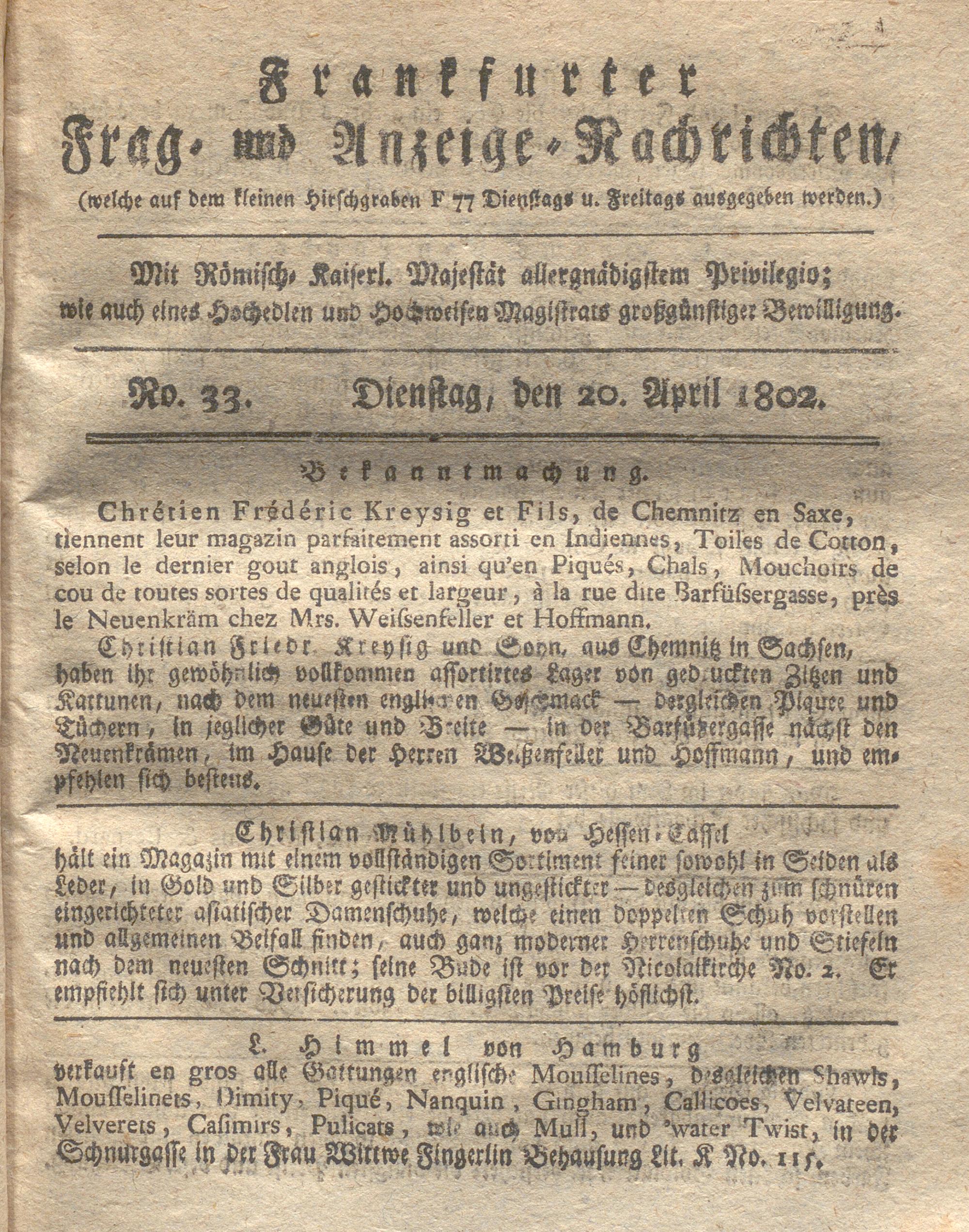 Franckfurter Frag- und Anzeige-Nachricht...