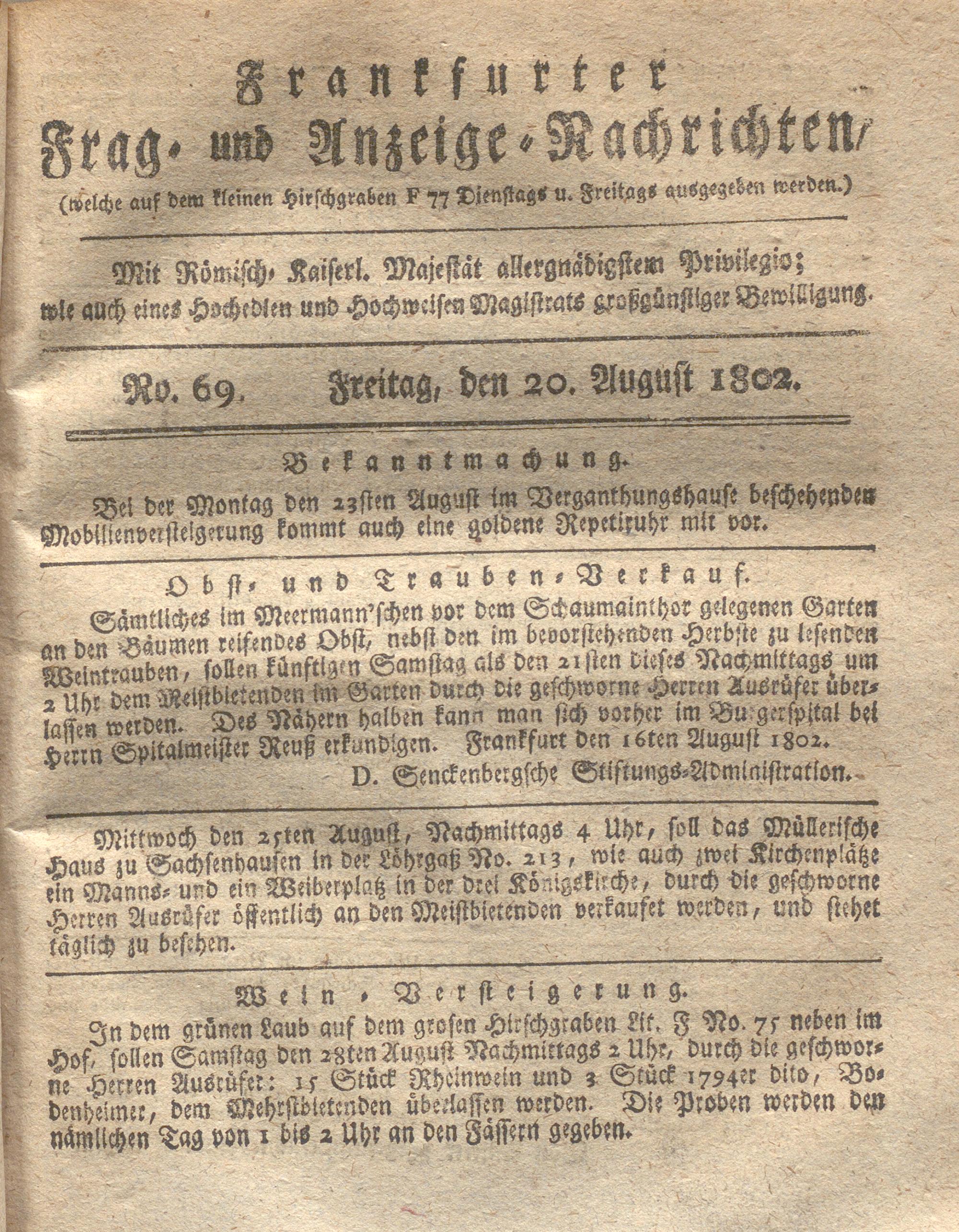 Franckfurter Frag- und Anzeige-Nachricht...