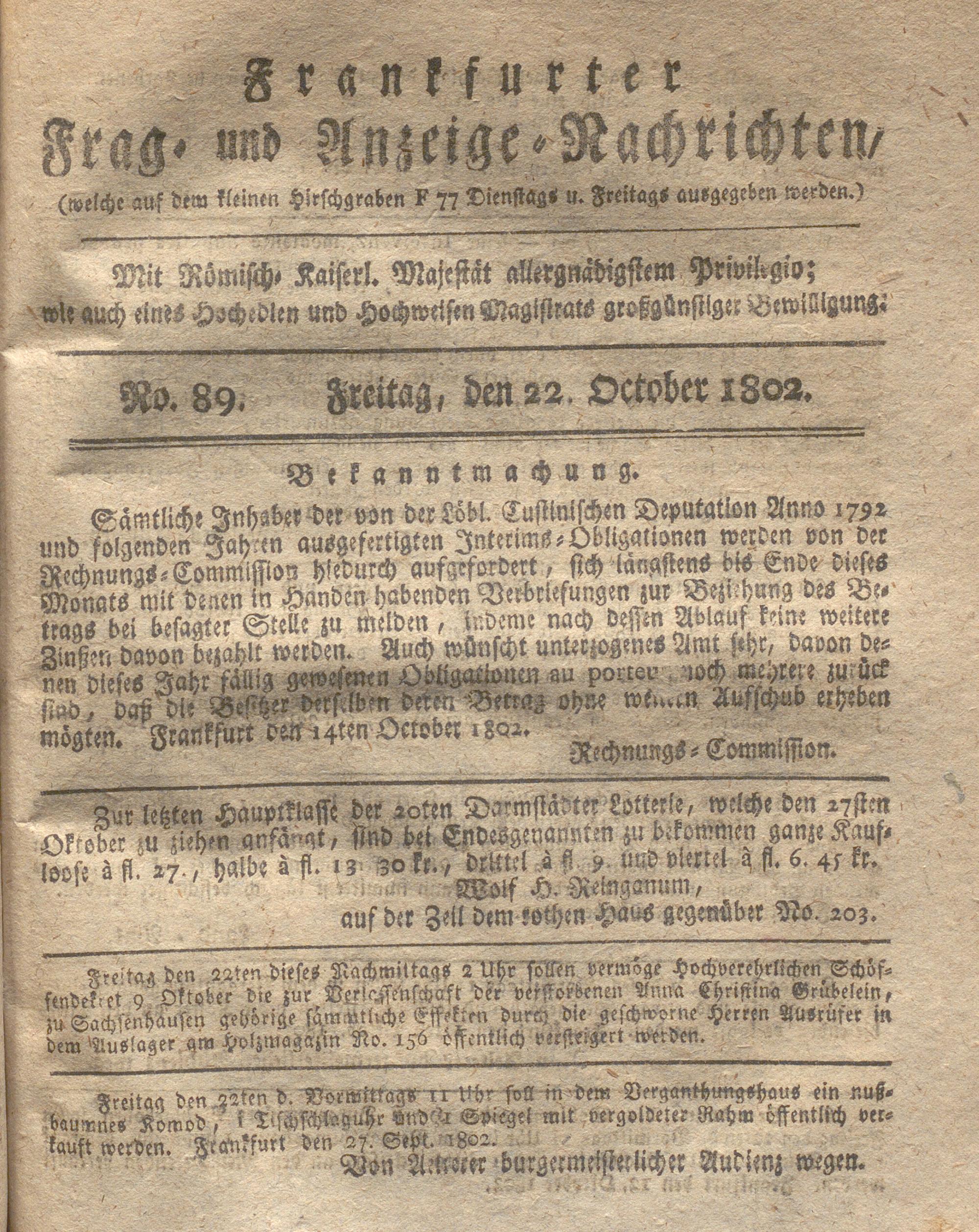 Franckfurter Frag- und Anzeige-Nachricht...