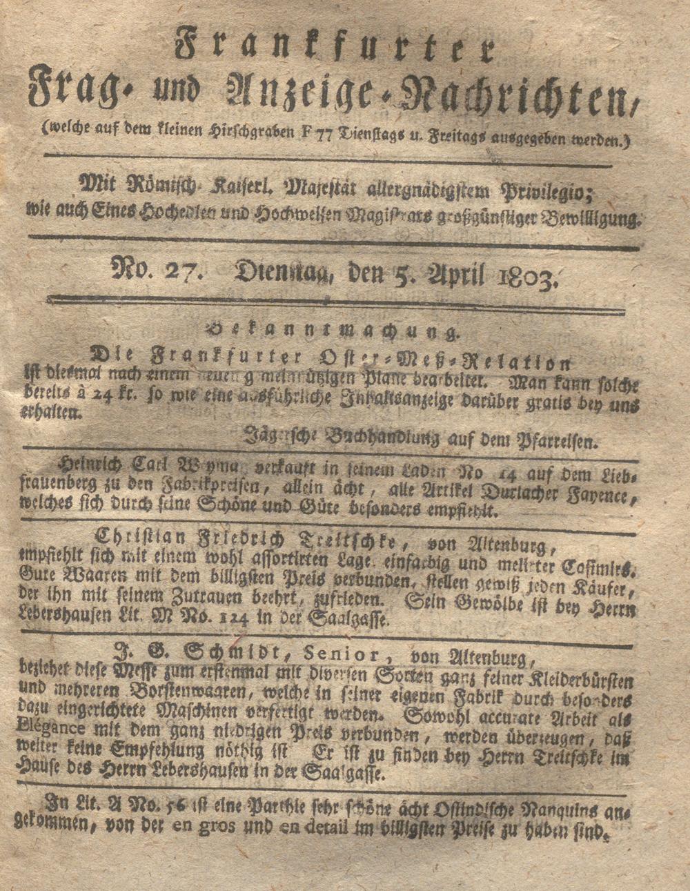 Franckfurter Frag- und Anzeige-Nachricht...