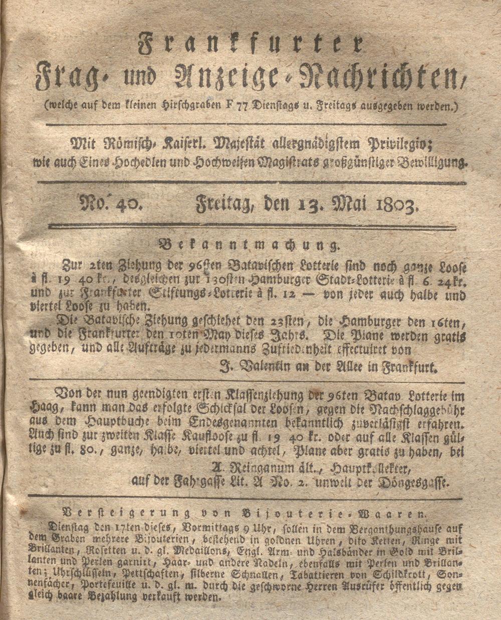 Franckfurter Frag- und Anzeige-Nachricht...