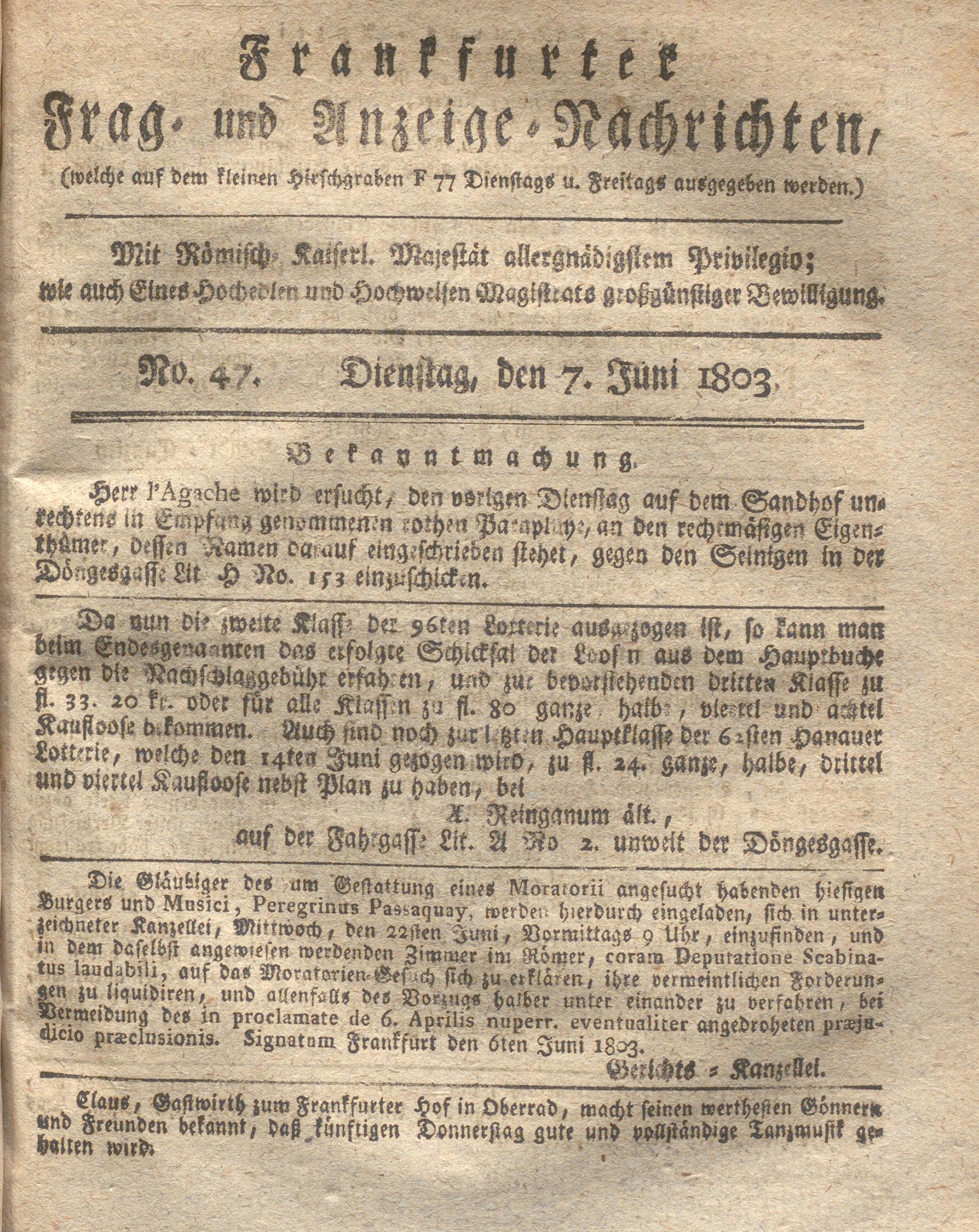 Franckfurter Frag- und Anzeige-Nachricht...