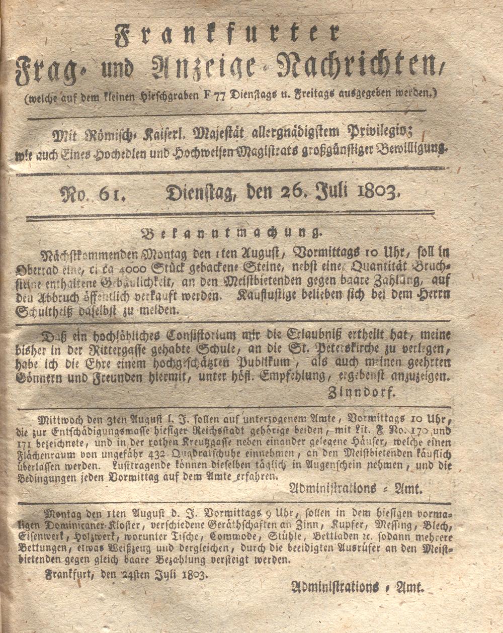 Franckfurter Frag- und Anzeige-Nachricht...