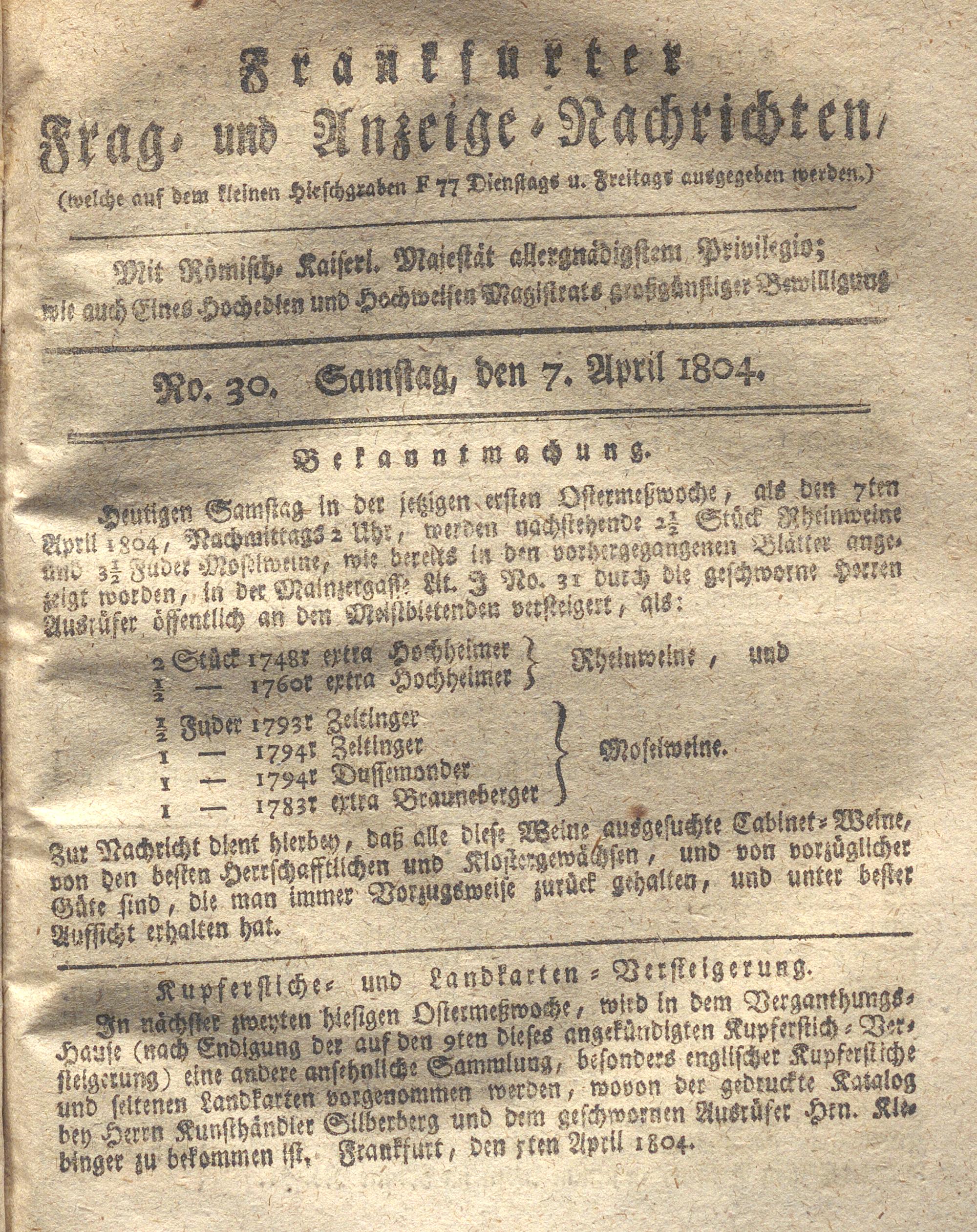 Franckfurter Frag- und Anzeige-Nachricht...