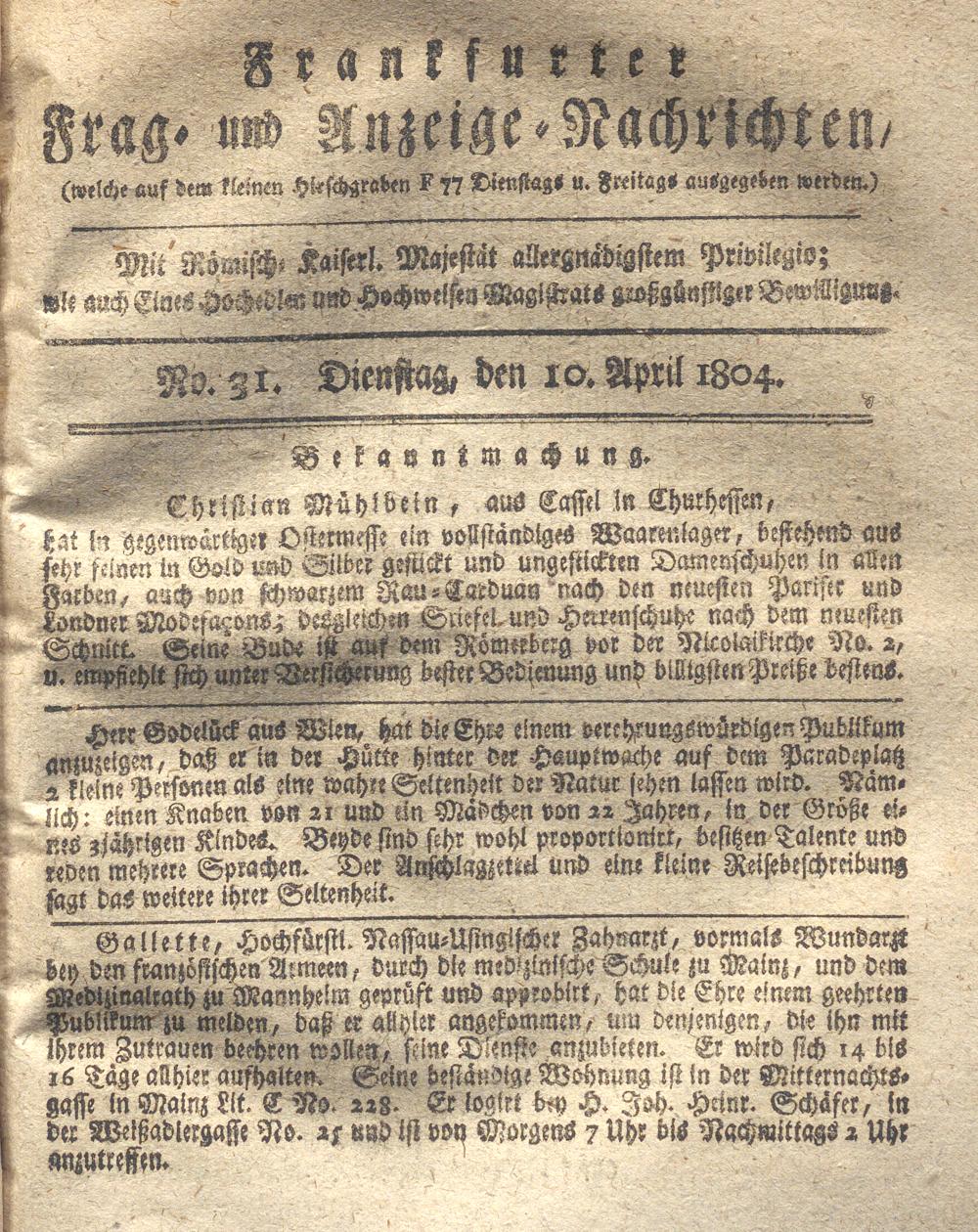 Franckfurter Frag- und Anzeige-Nachricht...