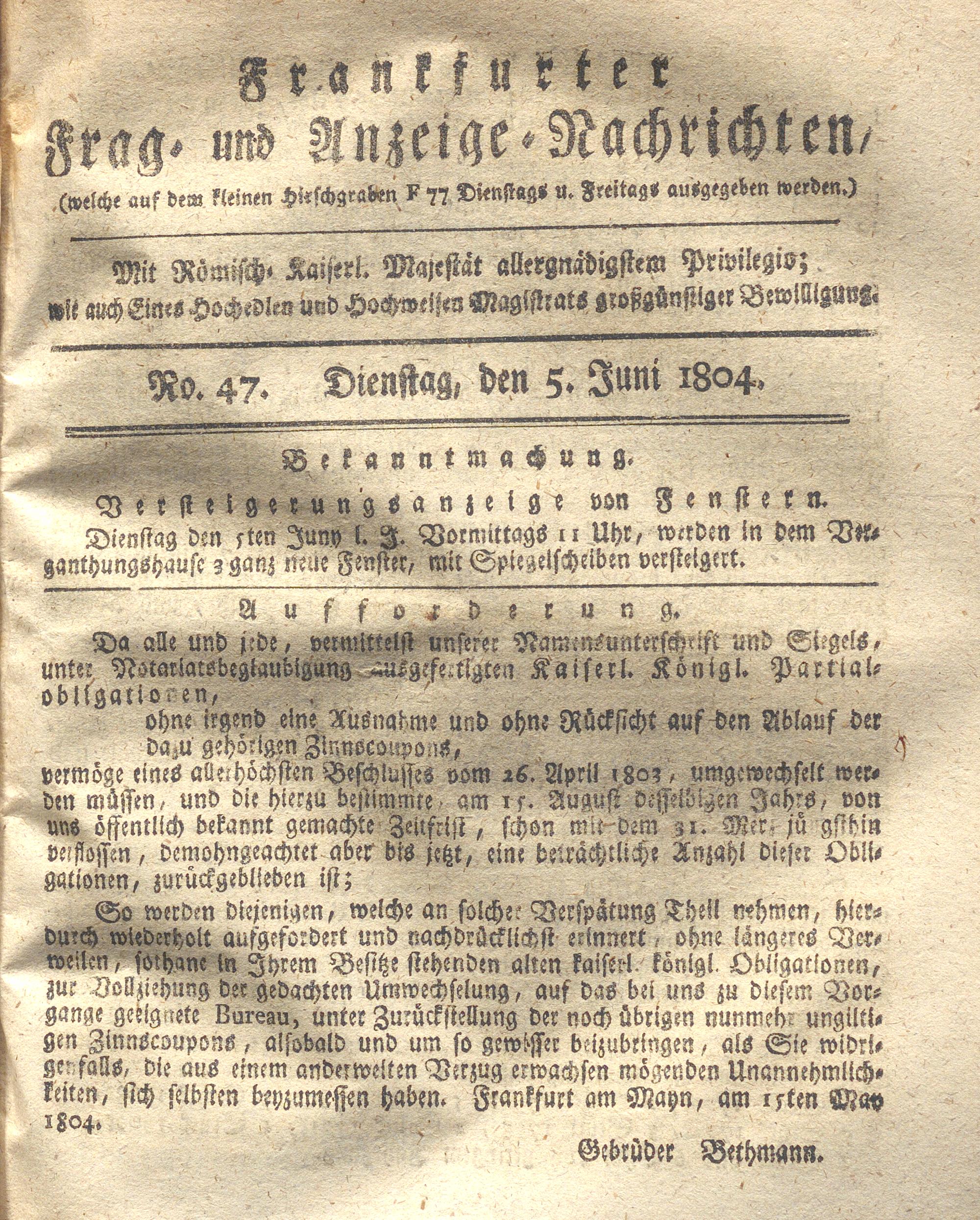 Franckfurter Frag- und Anzeige-Nachricht...