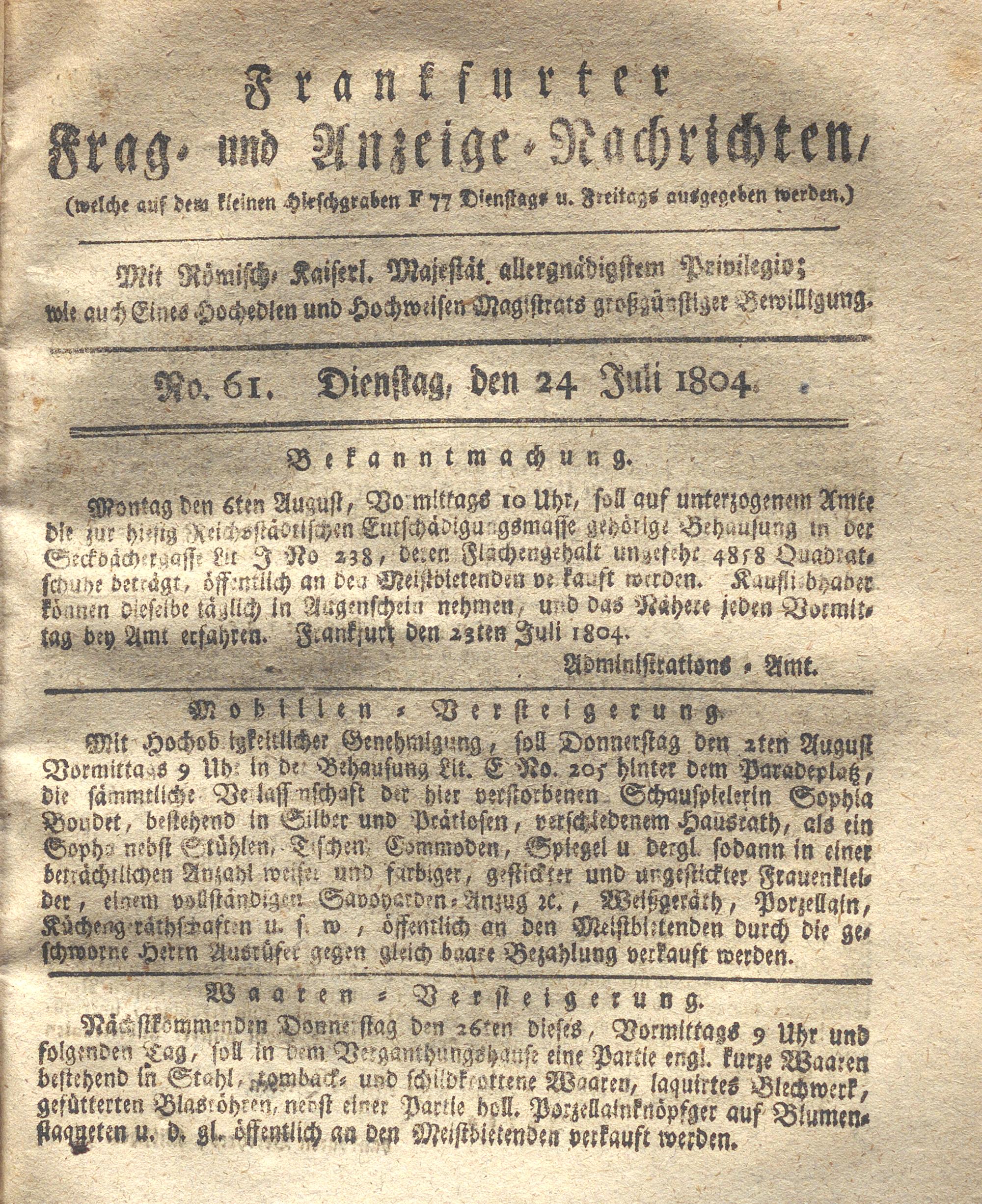 Franckfurter Frag- und Anzeige-Nachricht...