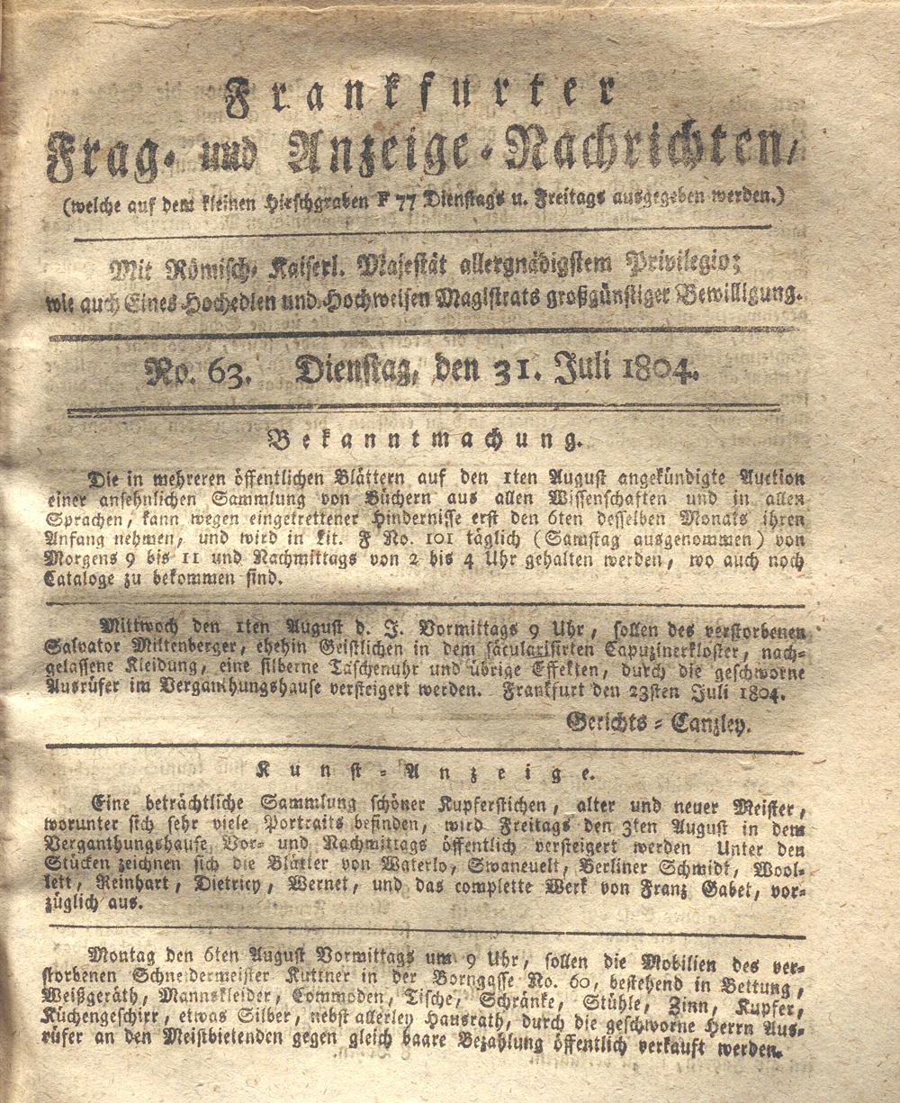 Franckfurter Frag- und Anzeige-Nachricht...