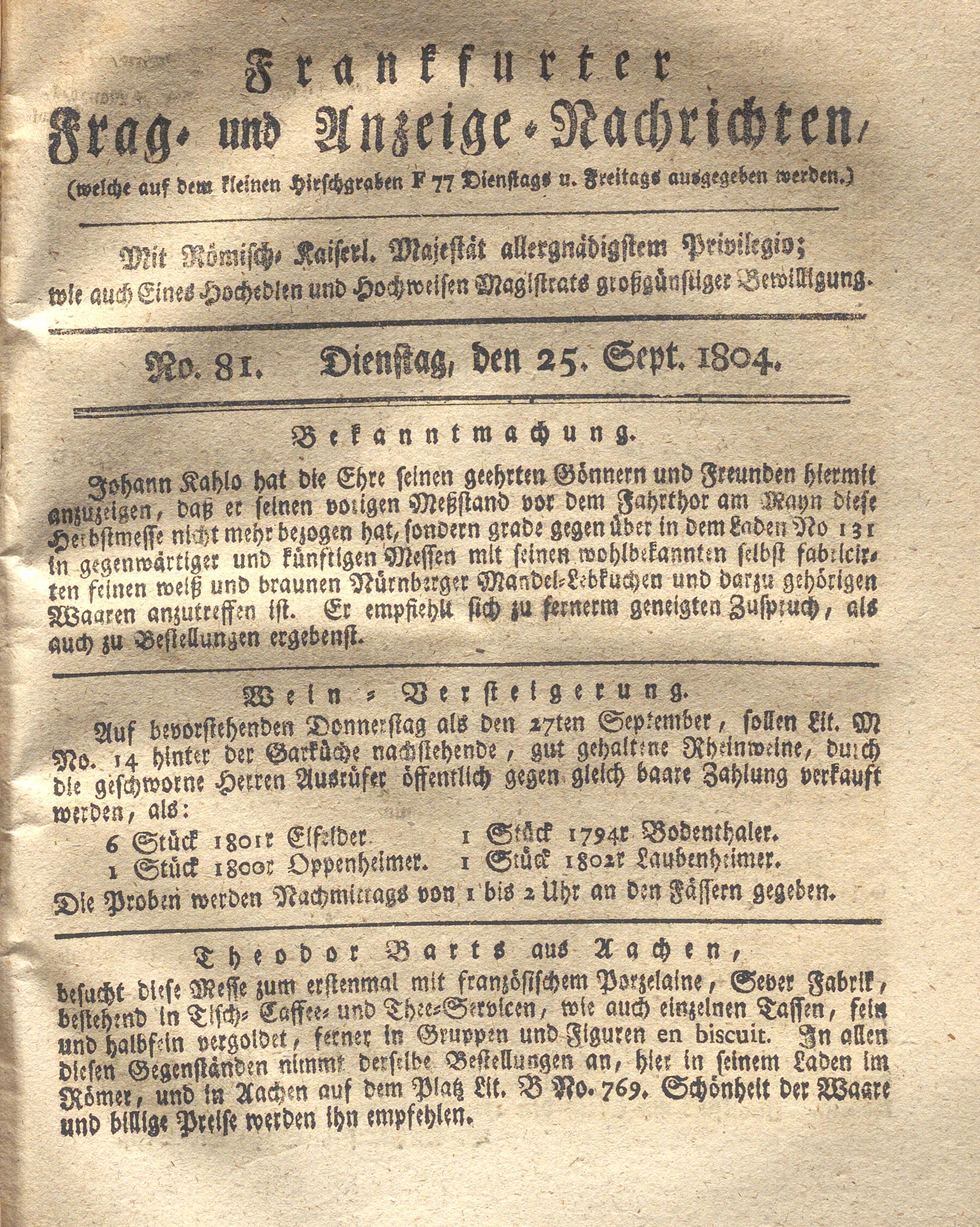 Franckfurter Frag- und Anzeige-Nachricht...