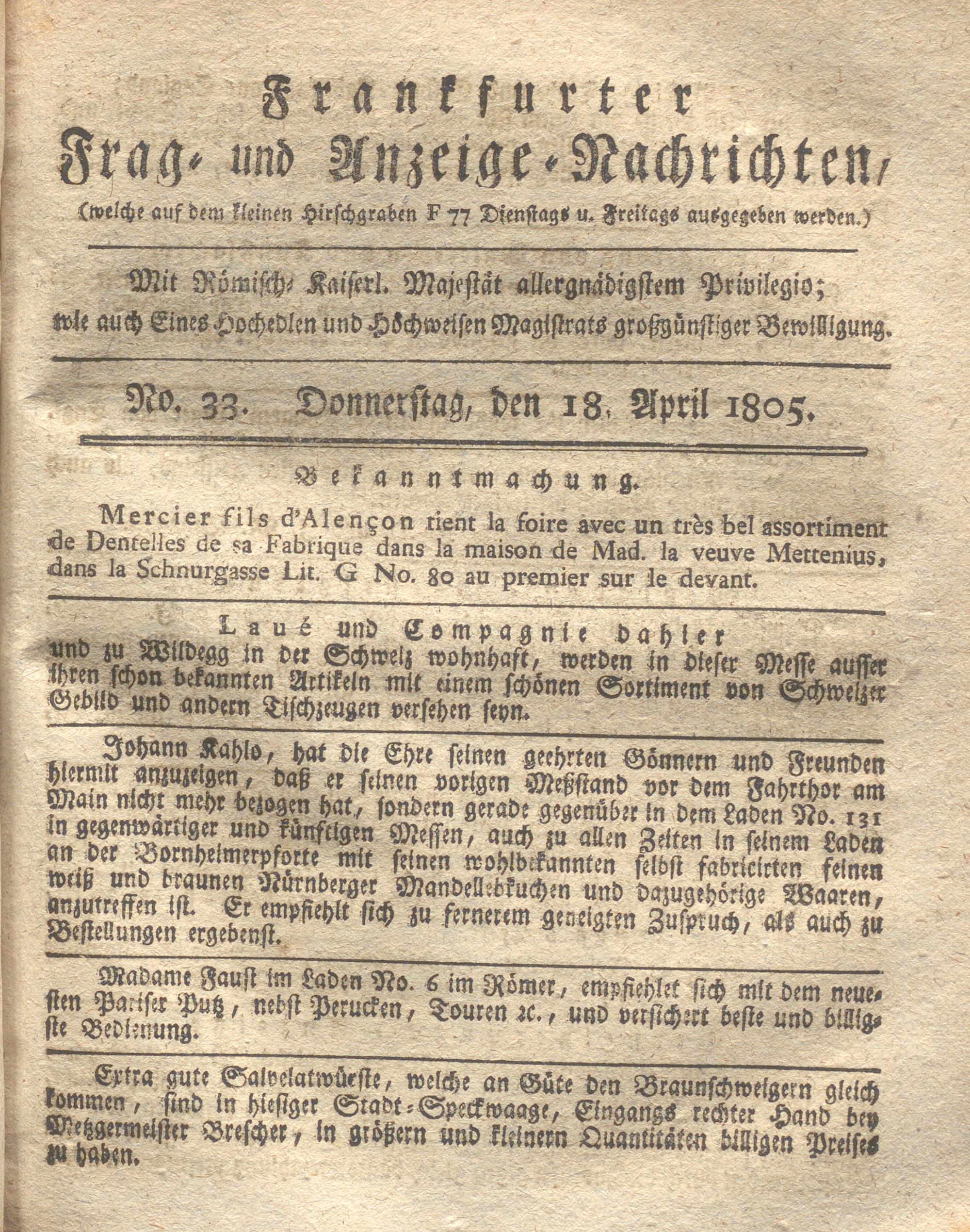 Franckfurter Frag- und Anzeige-Nachricht...