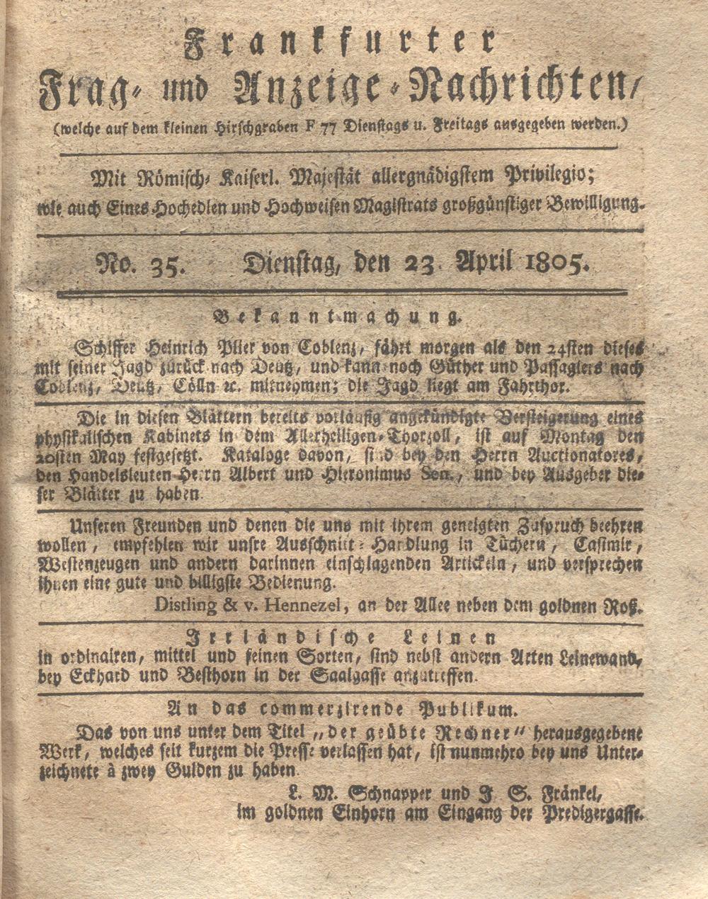 Franckfurter Frag- und Anzeige-Nachricht...