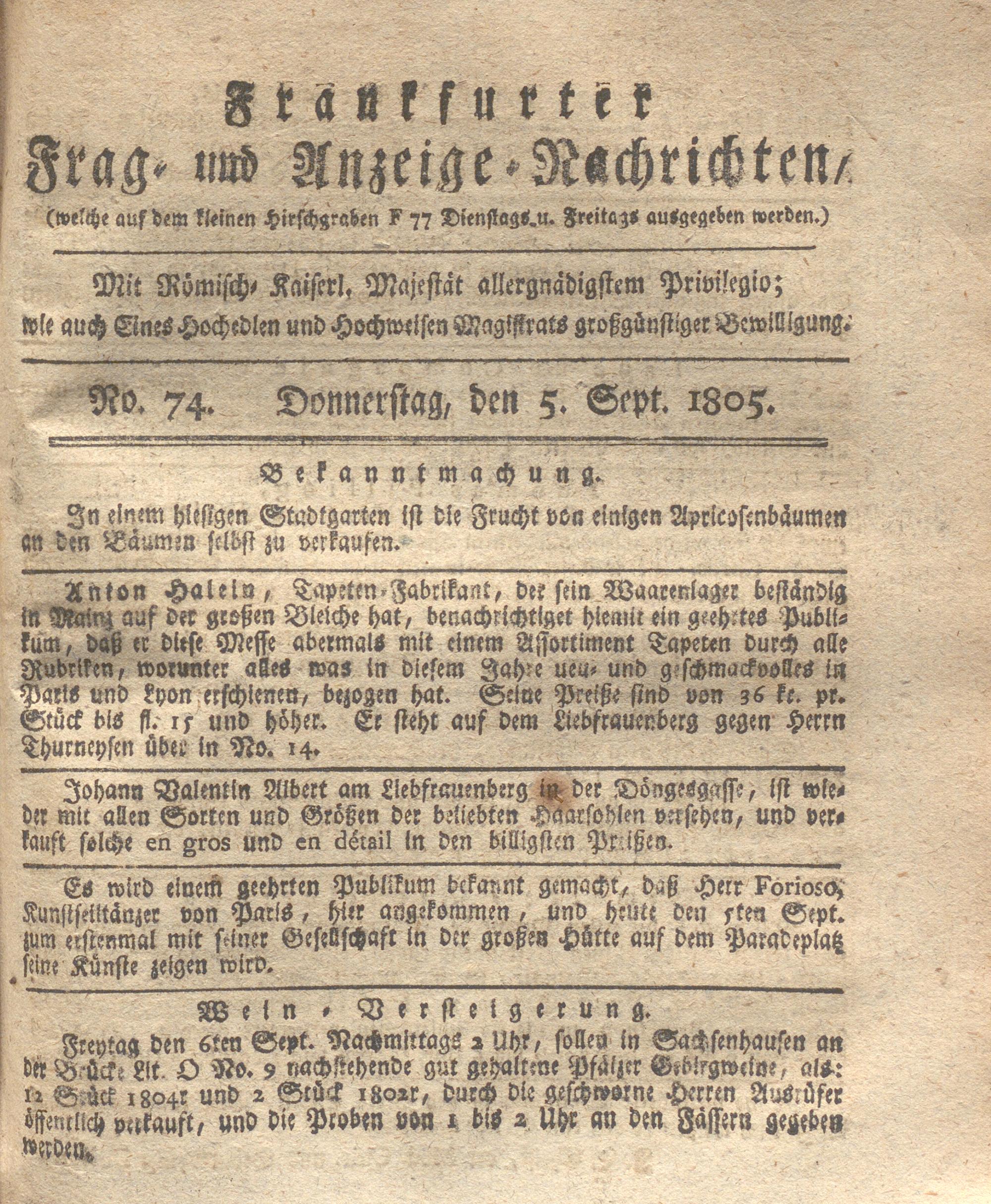 Franckfurter Frag- und Anzeige-Nachricht...