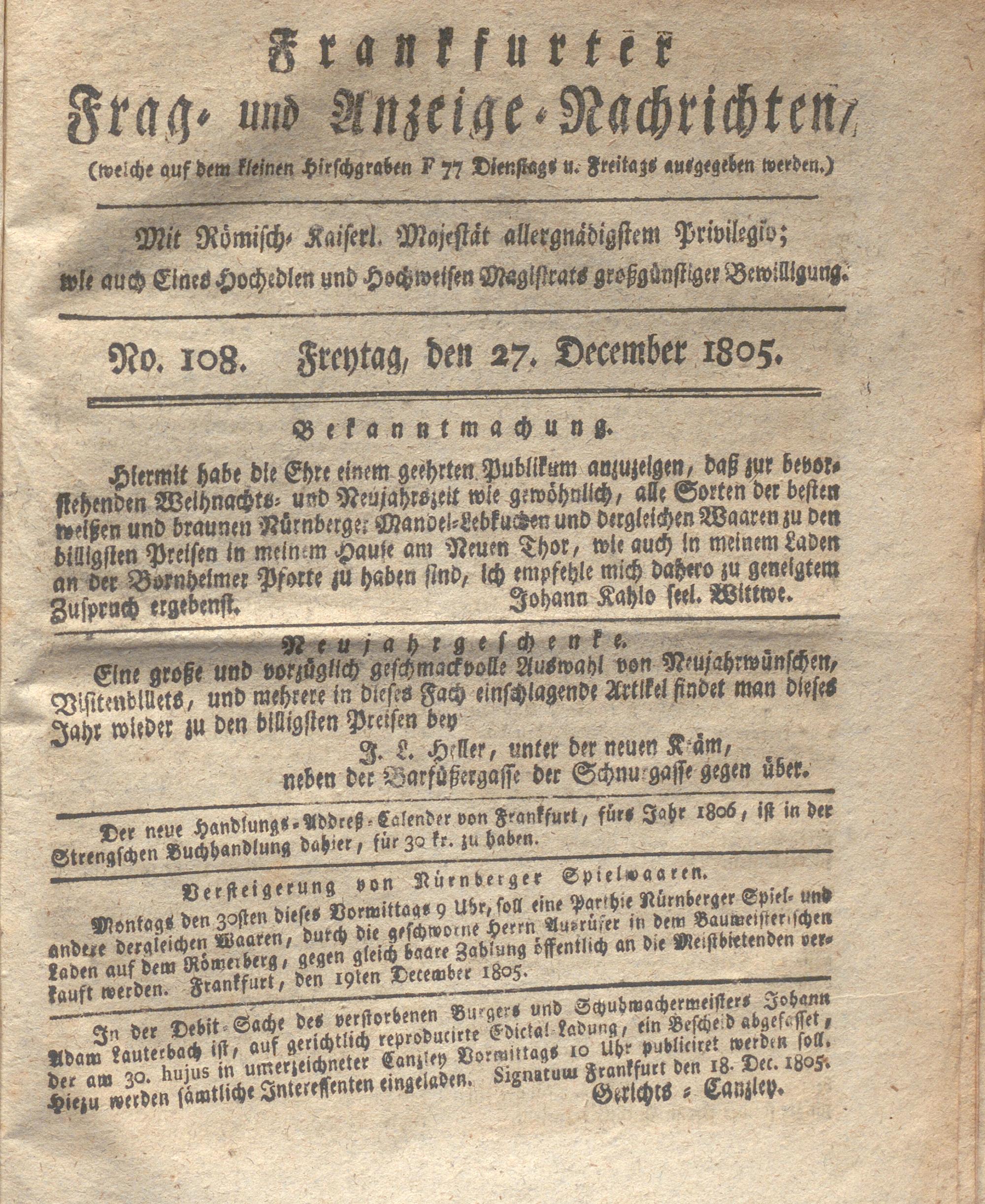 Franckfurter Frag- und Anzeige-Nachricht...