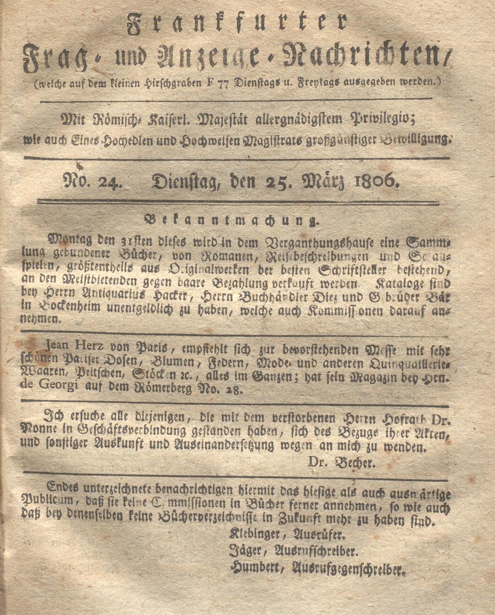 Franckfurter Frag- und Anzeige-Nachricht...