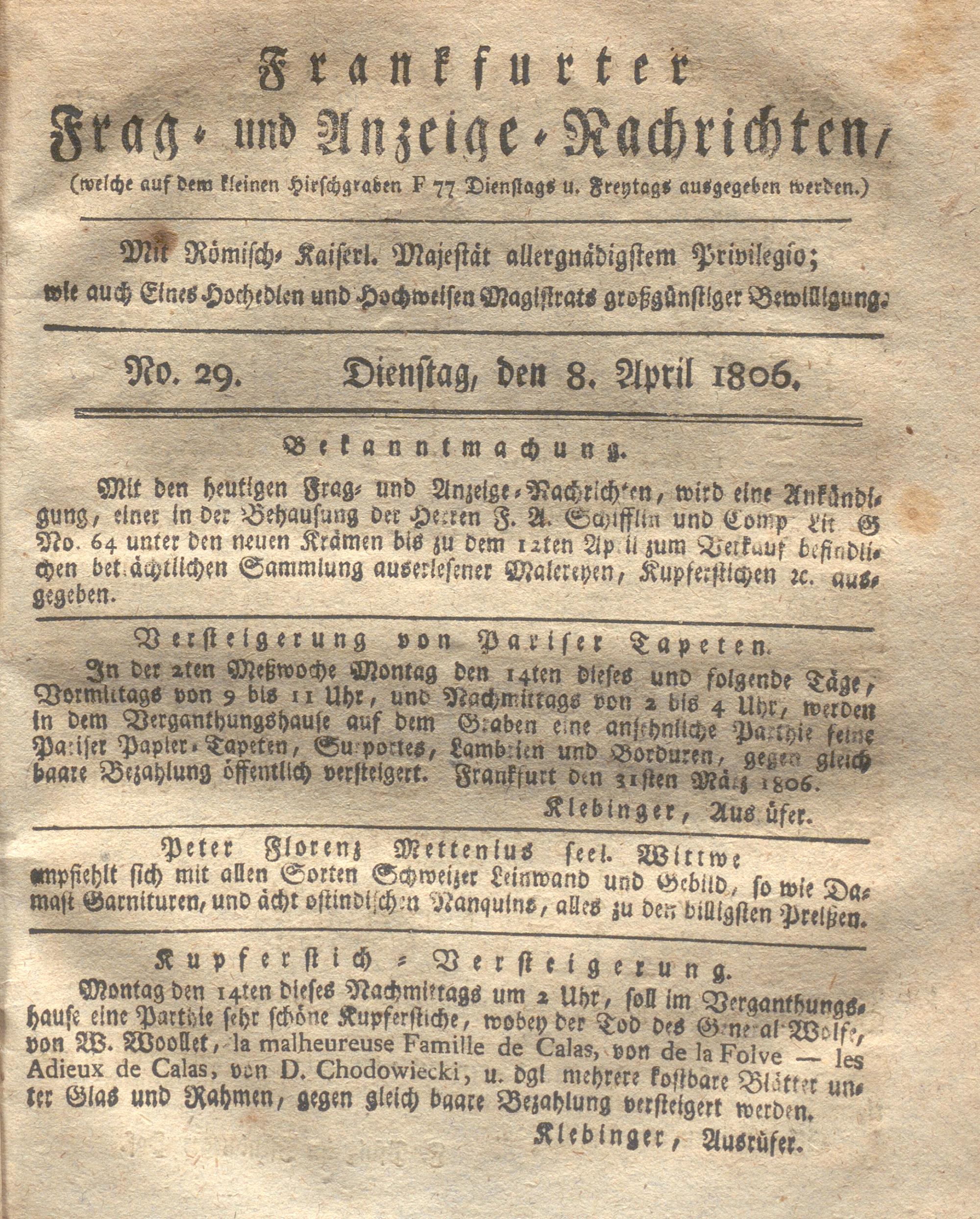 Franckfurter Frag- und Anzeige-Nachricht...