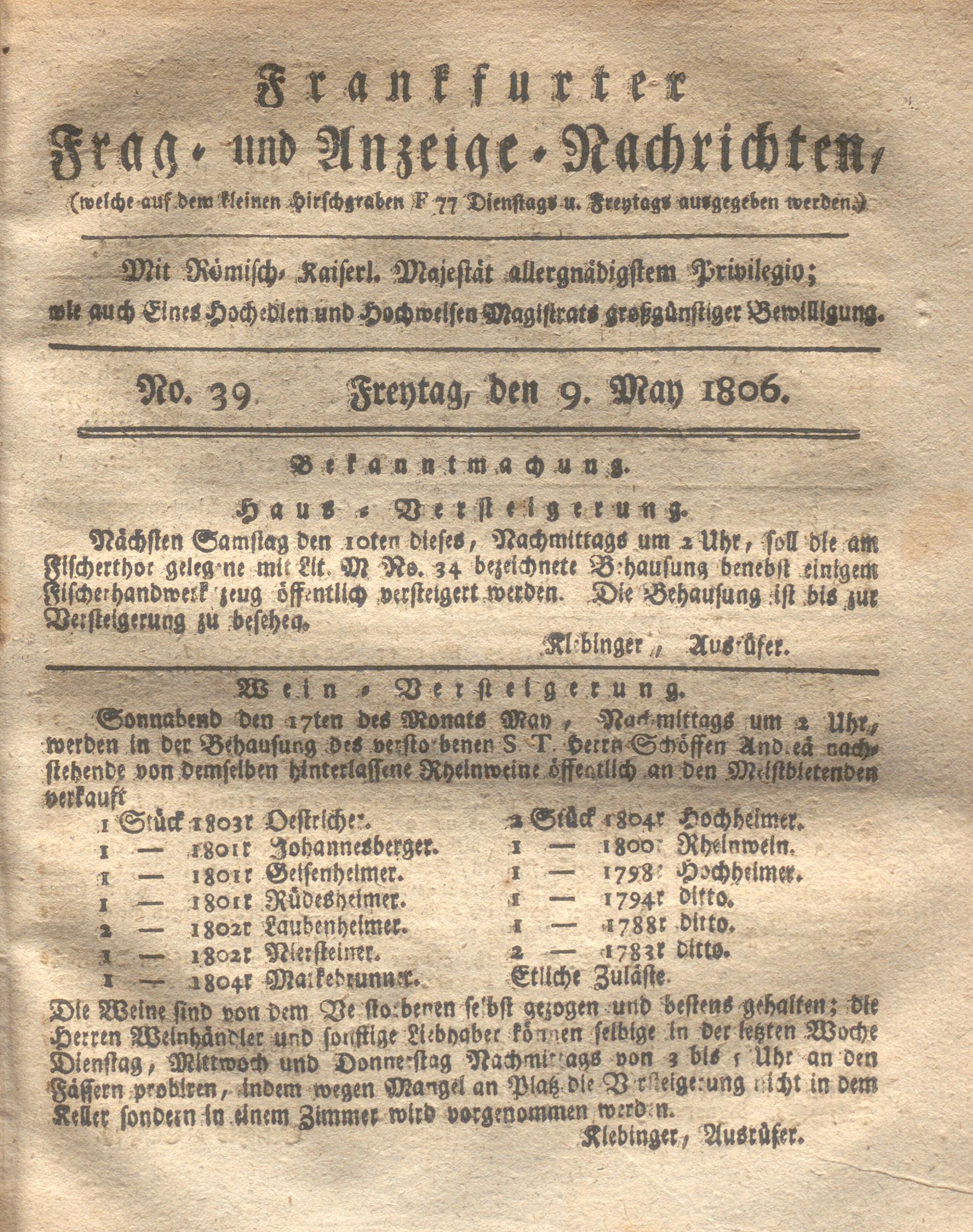 Franckfurter Frag- und Anzeige-Nachricht...