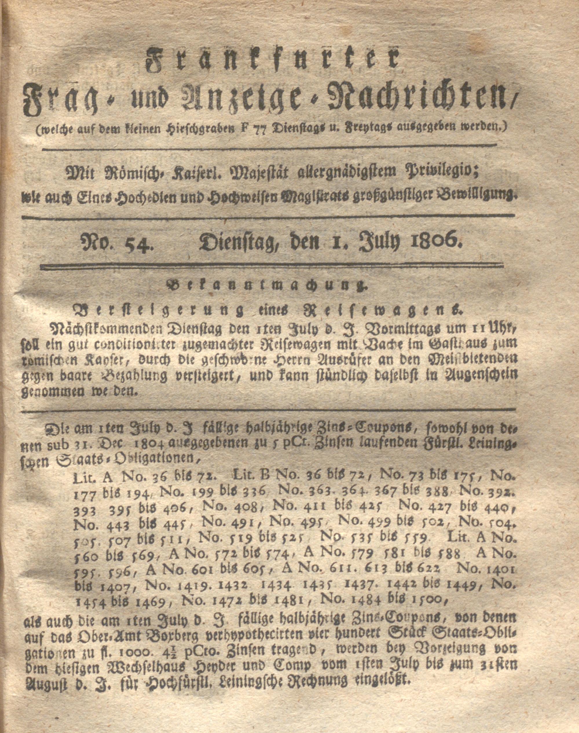 Franckfurter Frag- und Anzeige-Nachricht...