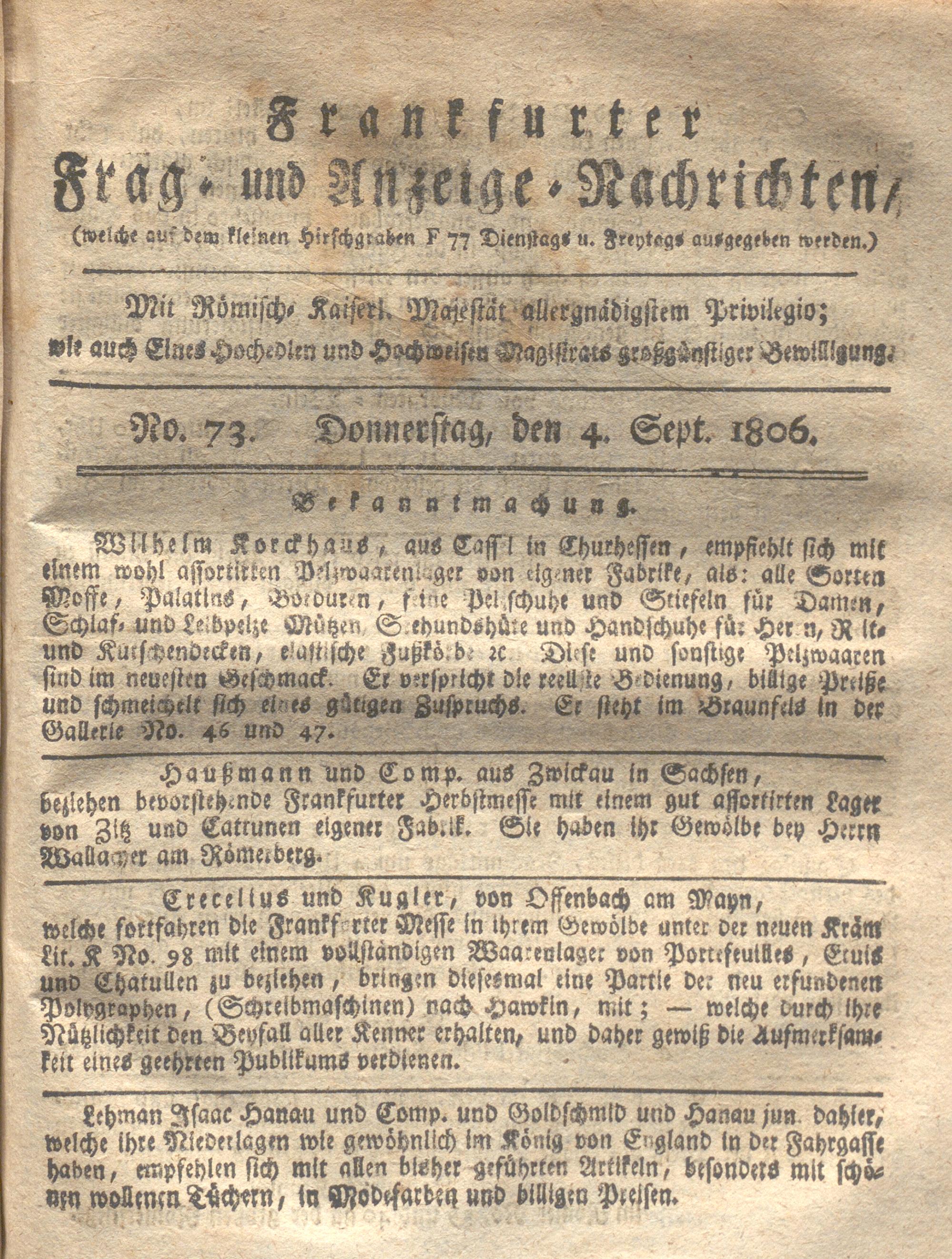 Franckfurter Frag- und Anzeige-Nachricht...