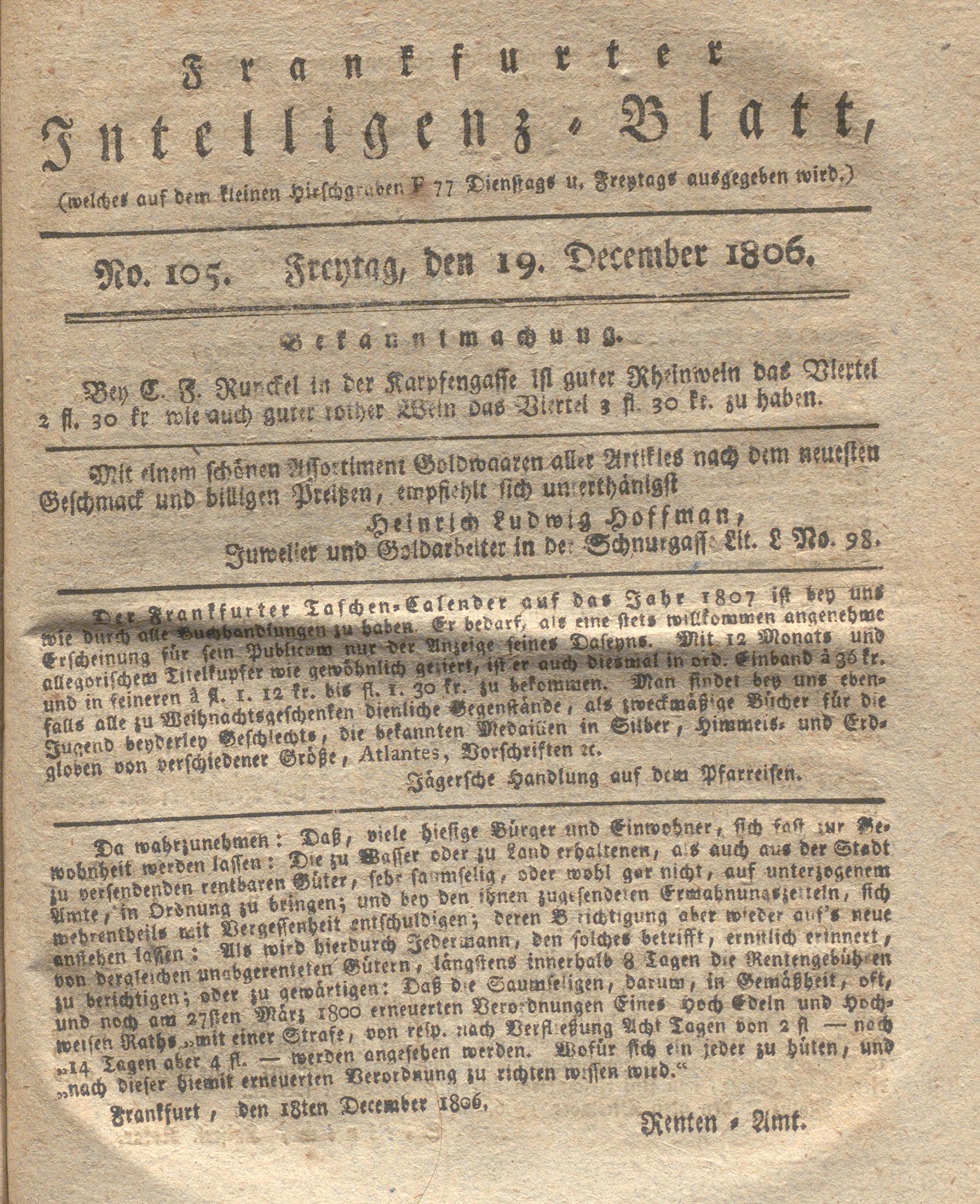 Franckfurter Frag- und Anzeige-Nachricht...