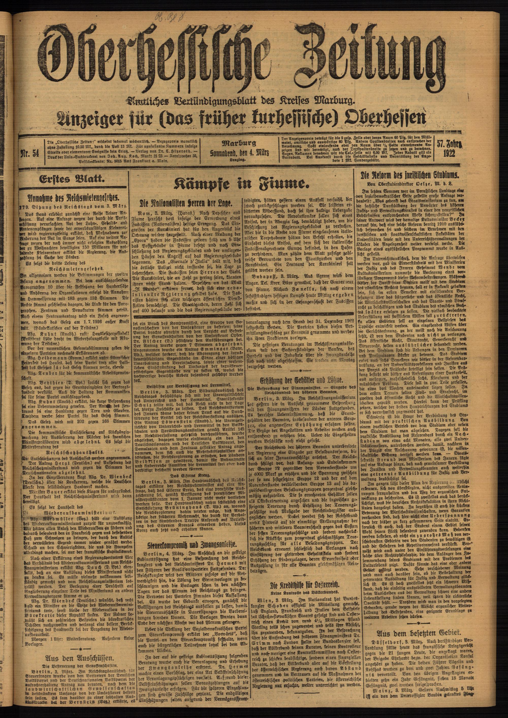 4.3.1922 erstes Blatt