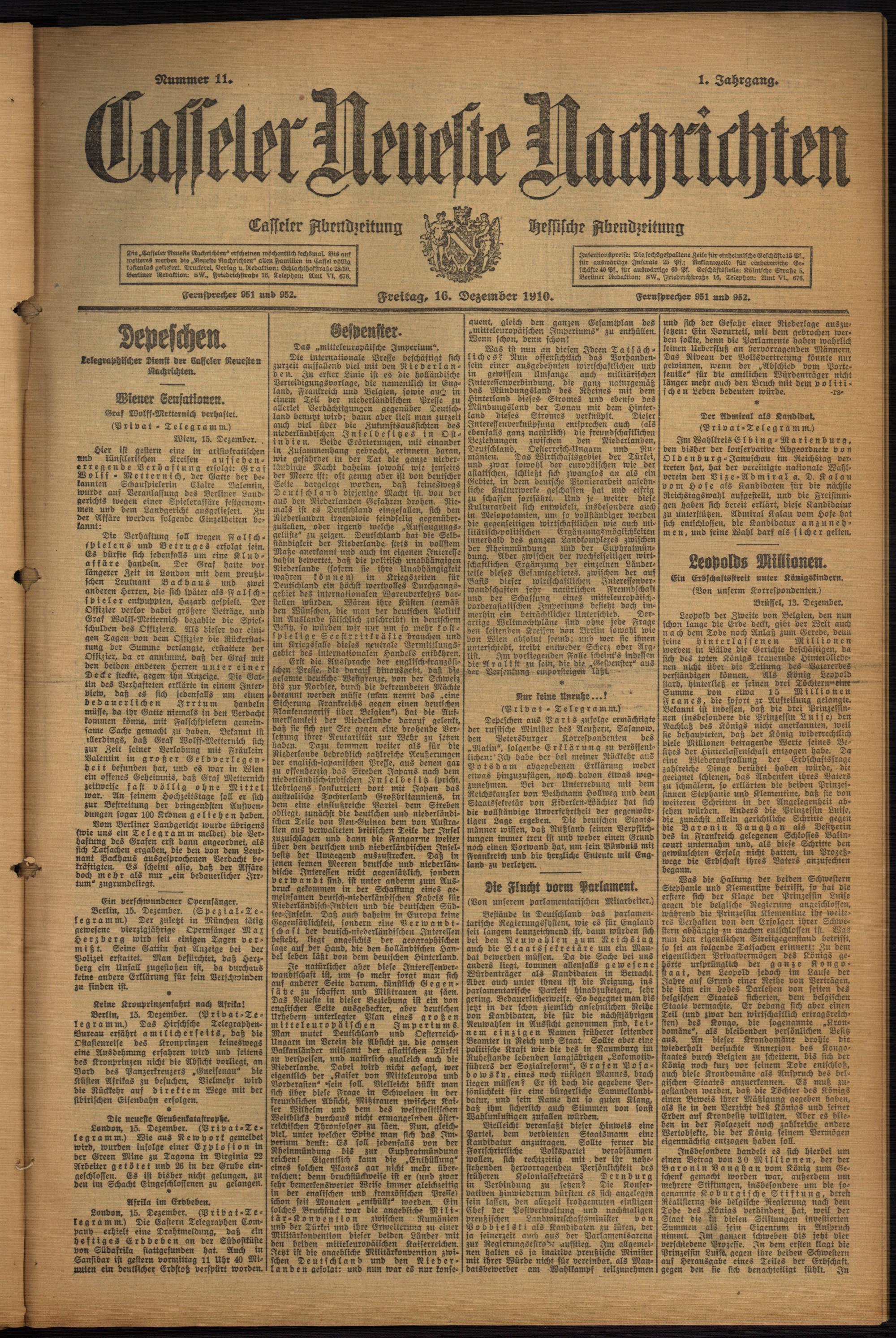 Casseler neueste Nachrichten. 1914-1918
