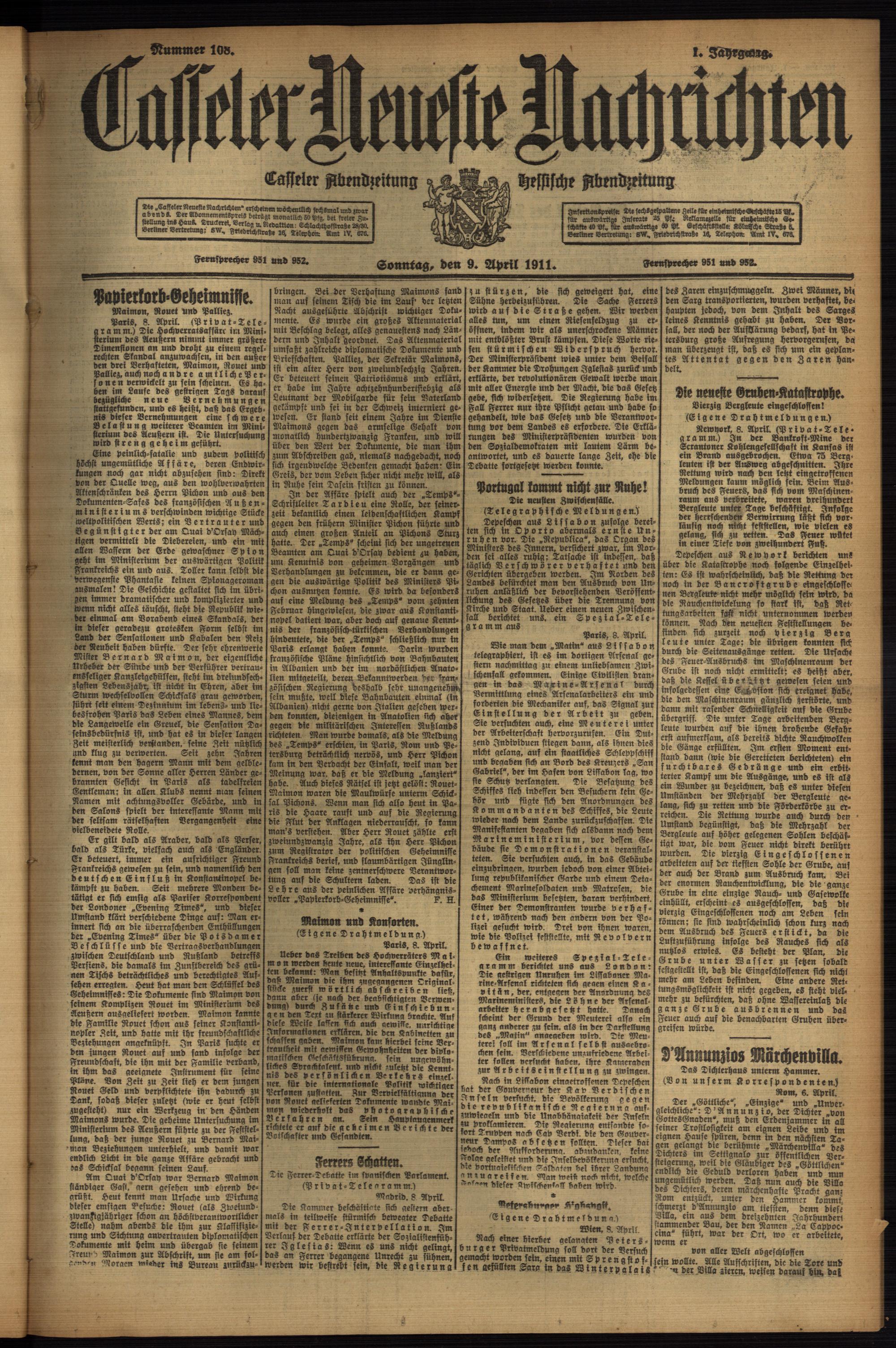 (1911) und Beilagen