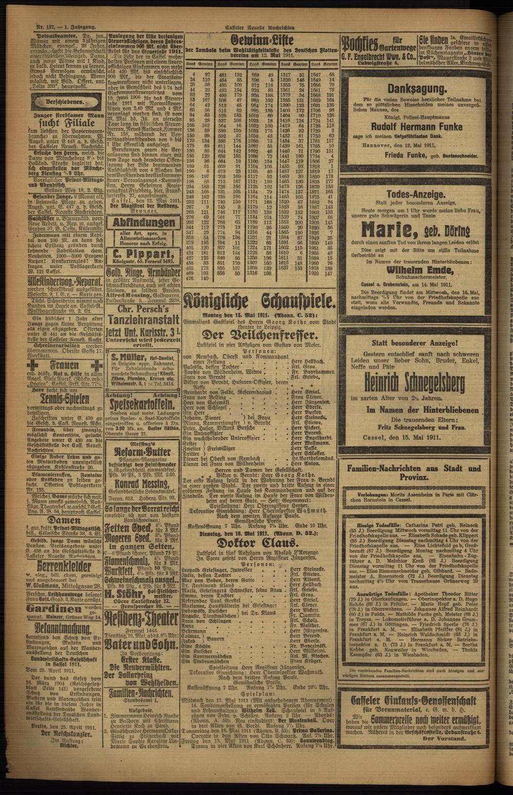 (1911) und Beilagen