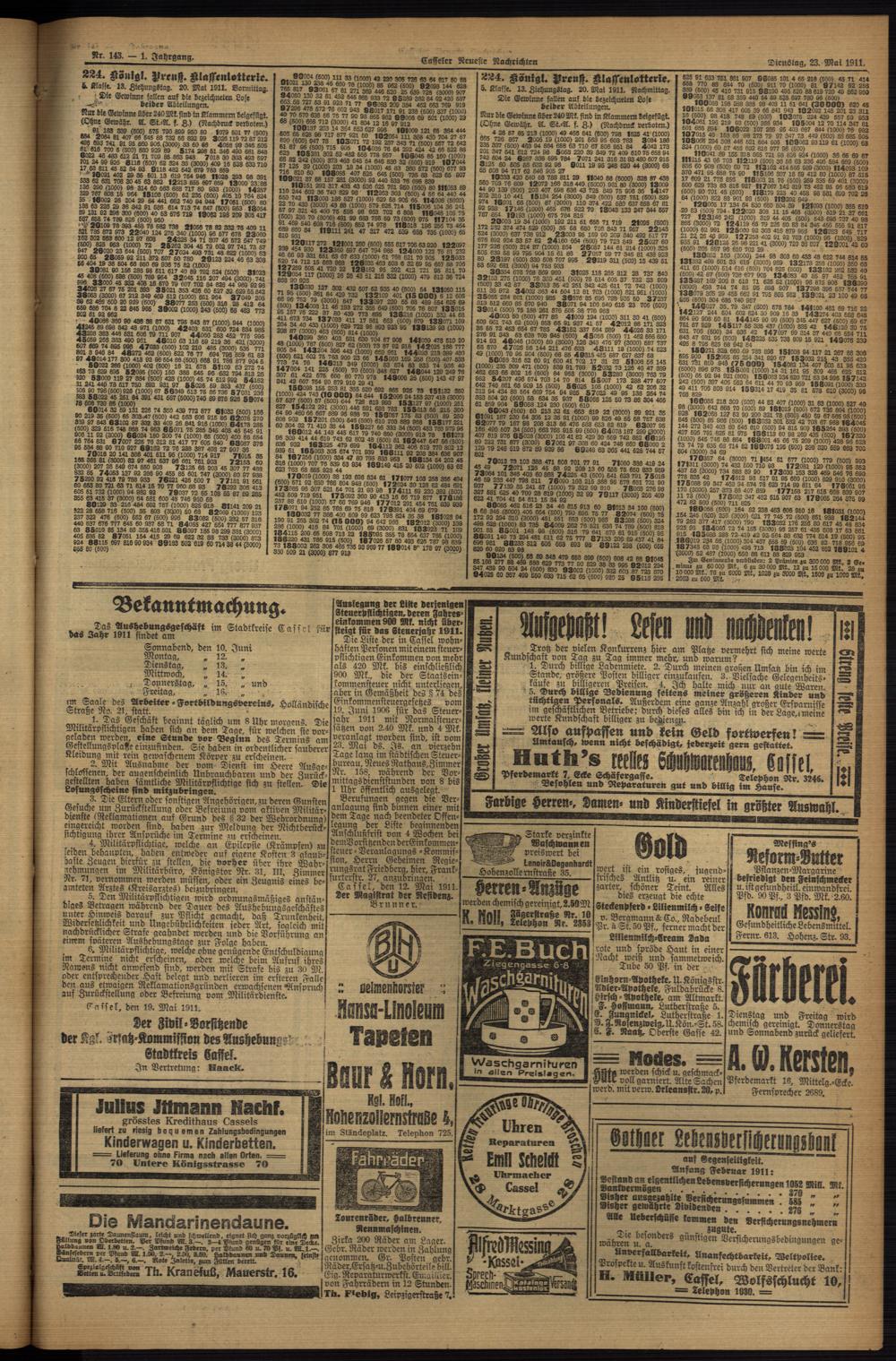 (1911) und Beilagen