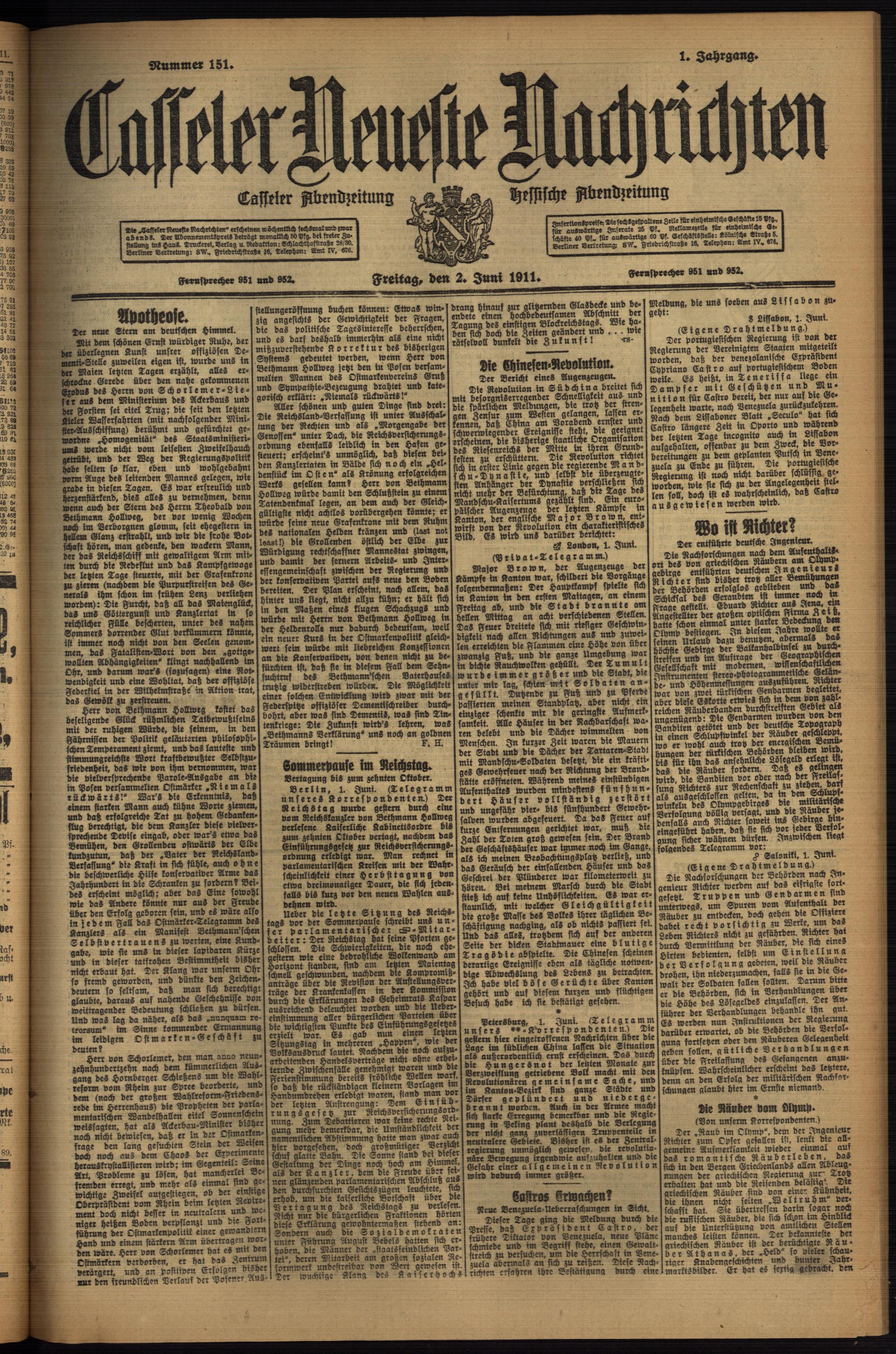 (1911) und Beilagen