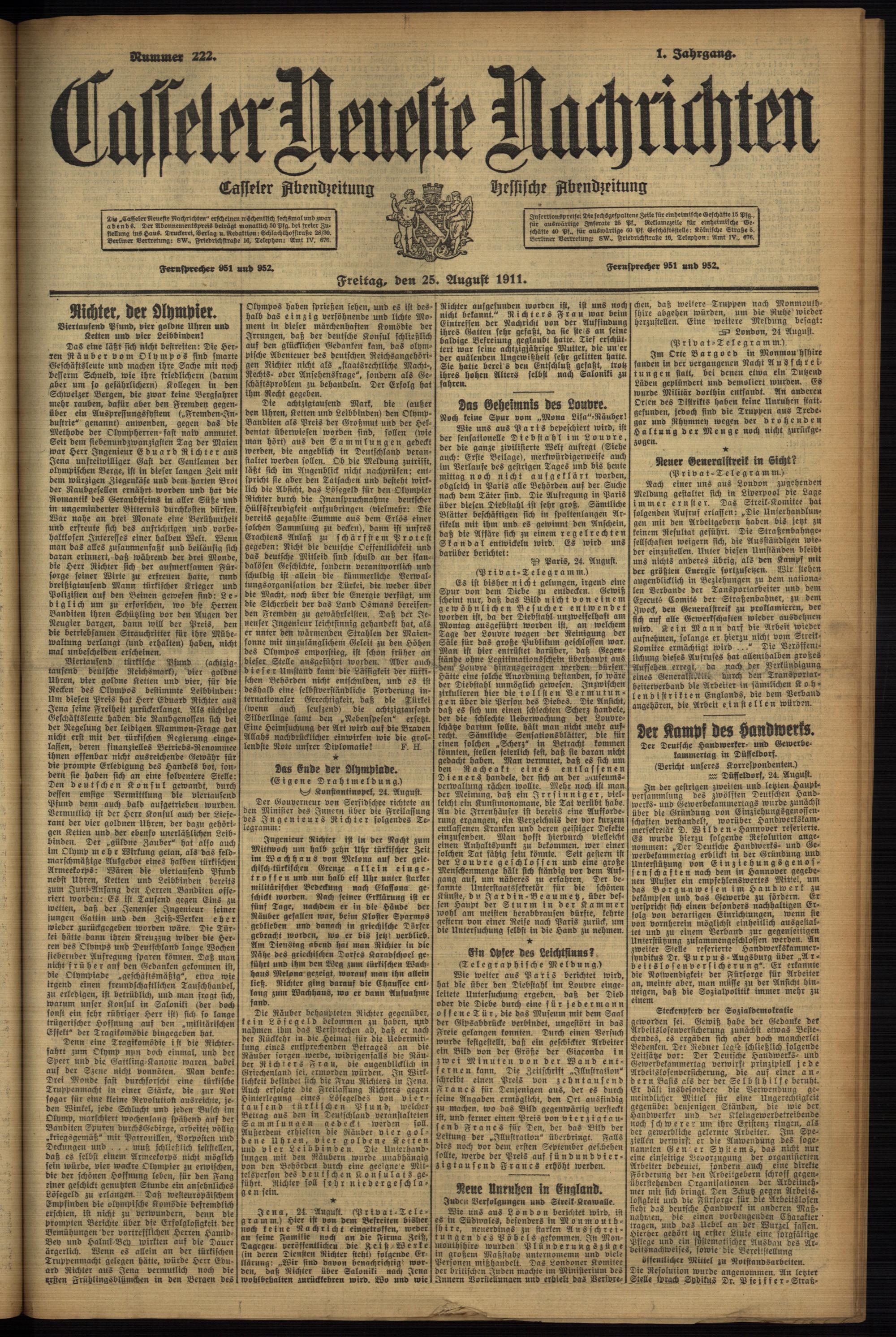Casseler neueste Nachrichten. 1914-1918