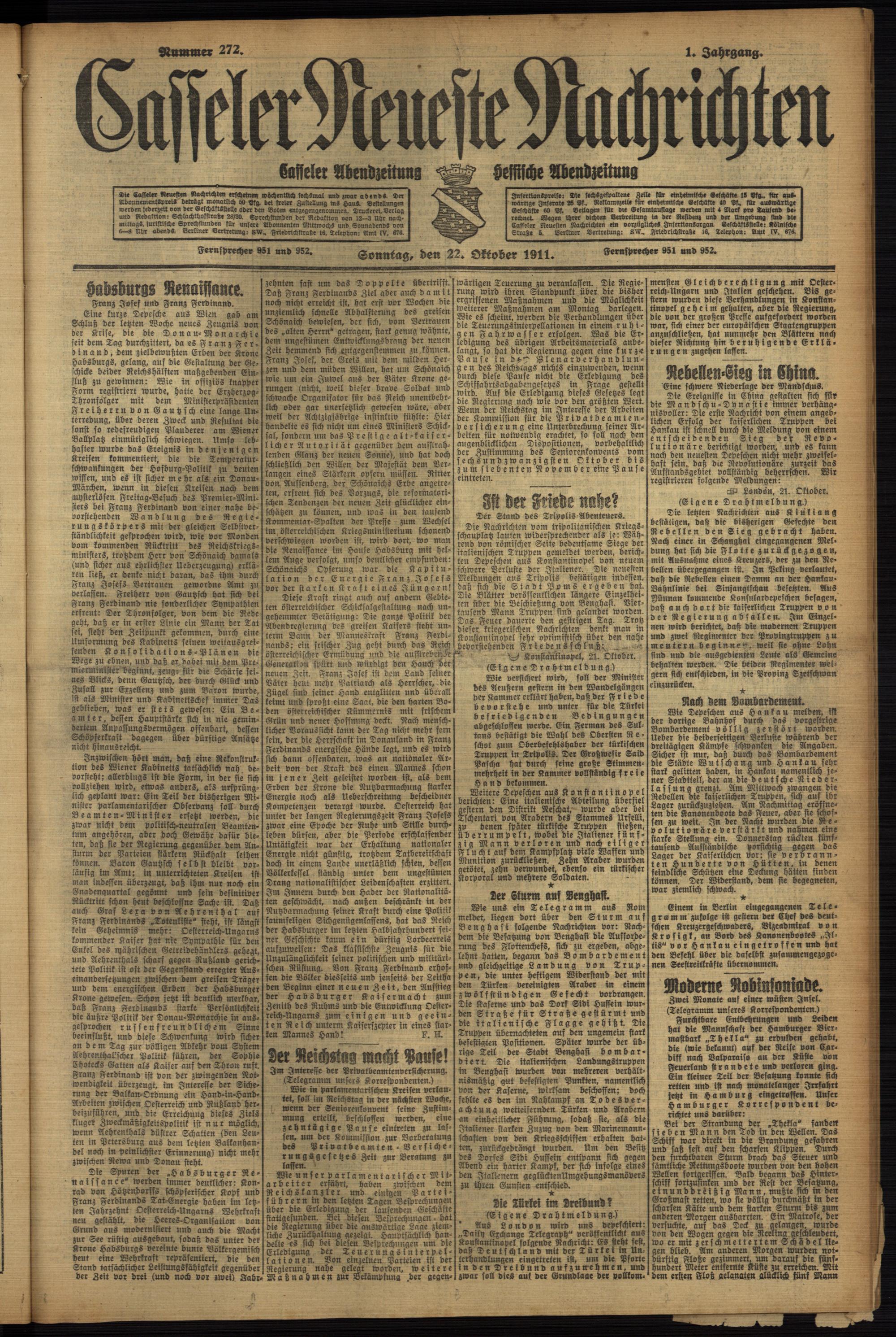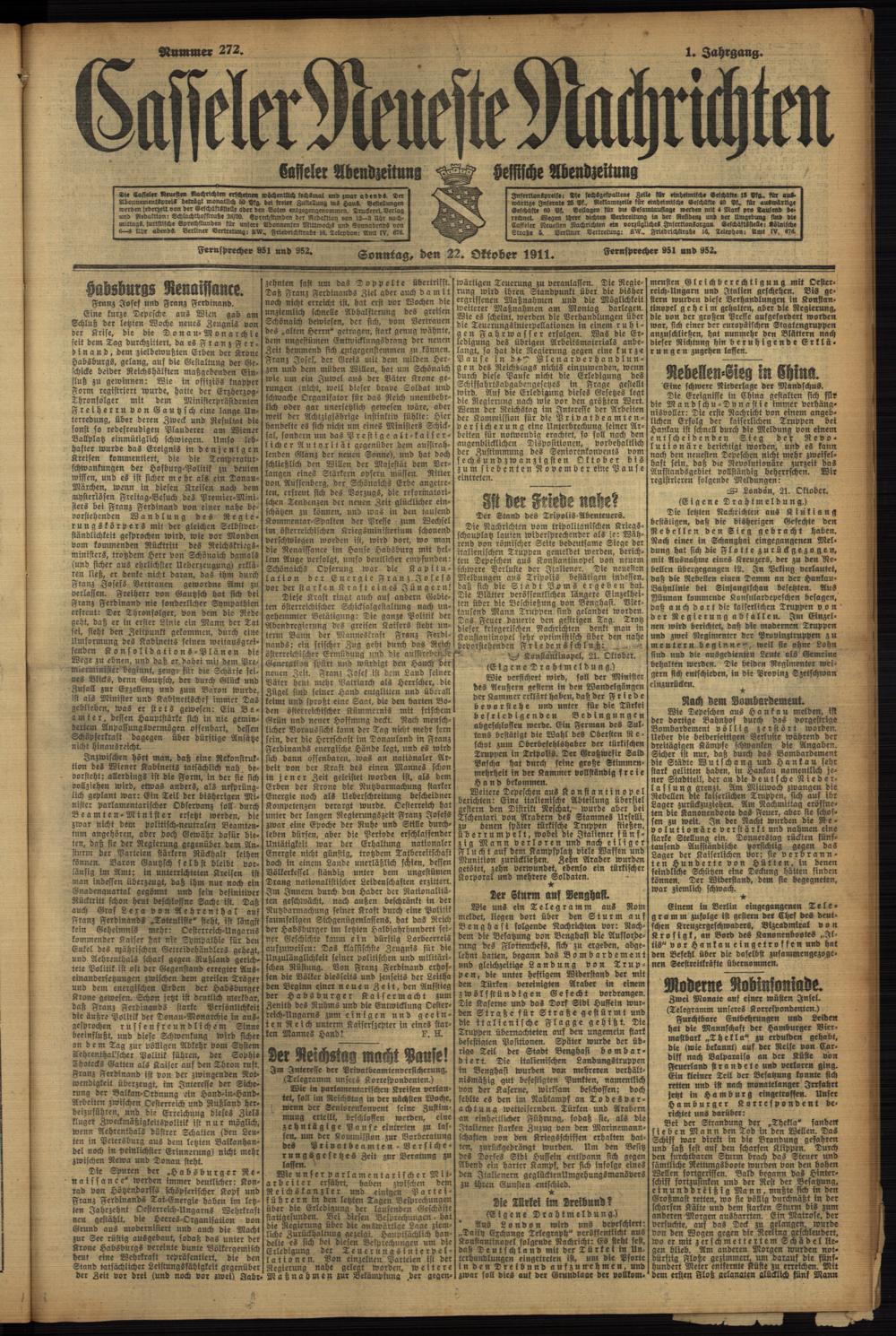 Casseler neueste Nachrichten. 1914-1918