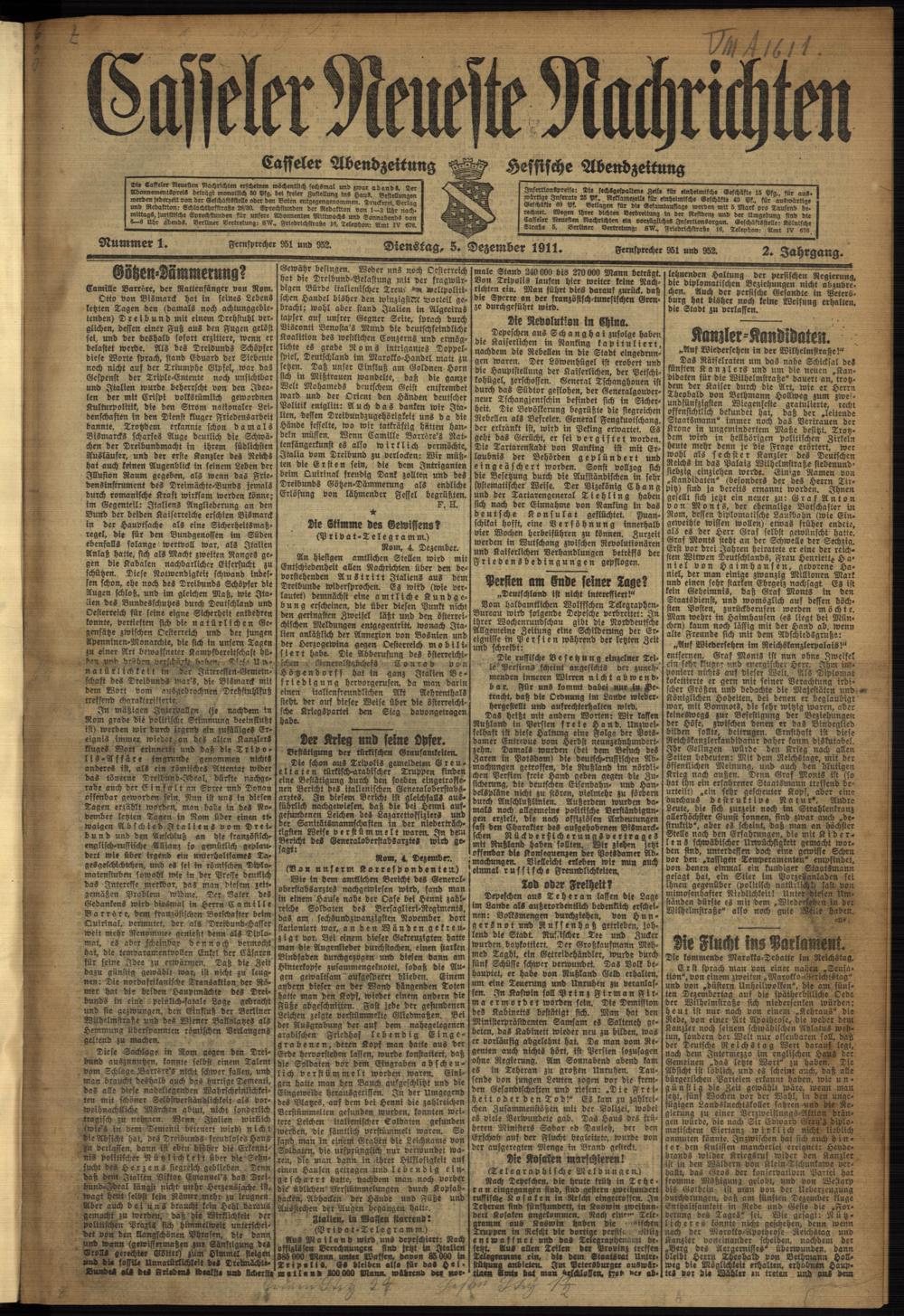 Casseler neueste Nachrichten. 1914-1918