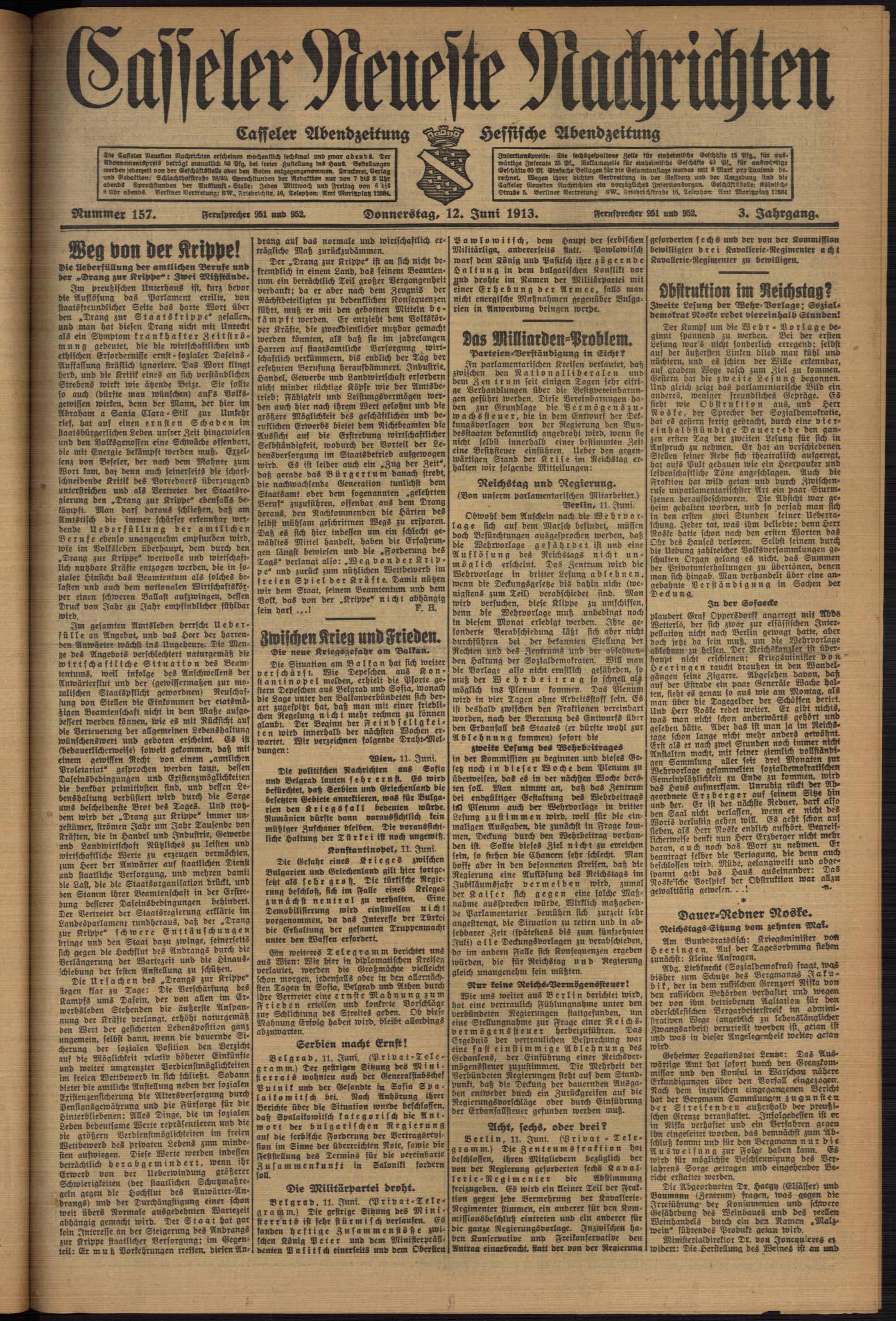 Casseler neueste Nachrichten. 1914-1918