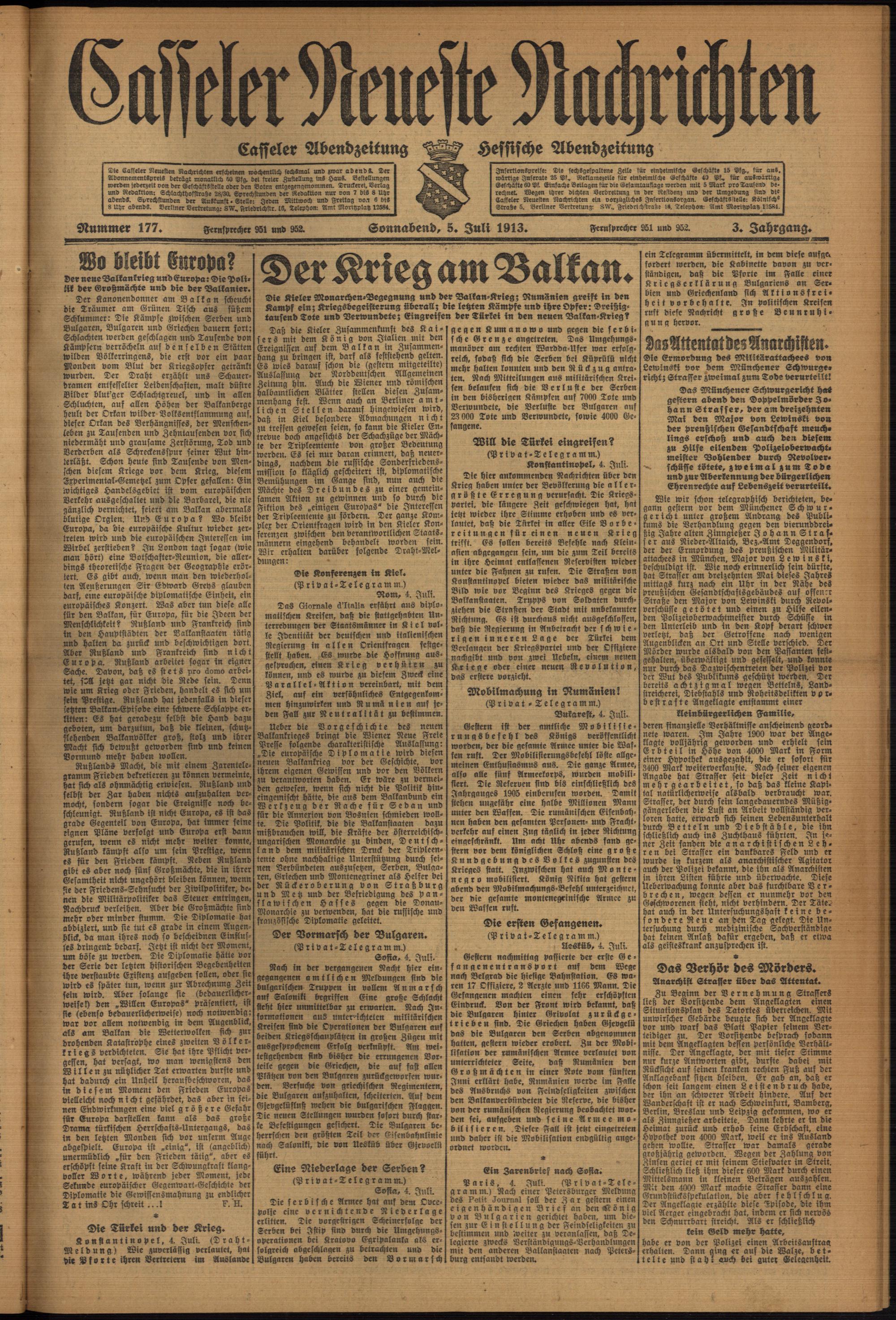 Casseler neueste Nachrichten. 1914-1918