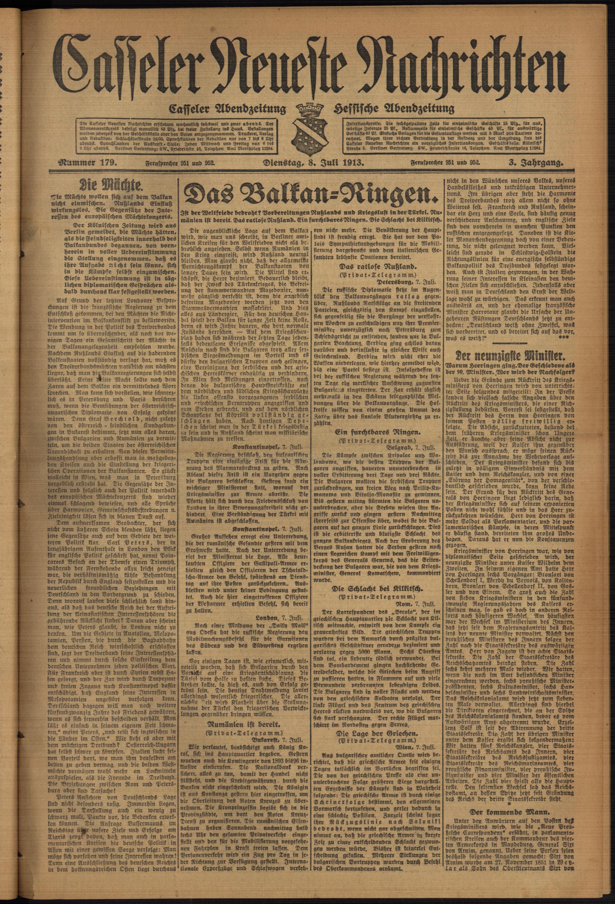 Casseler neueste Nachrichten. 1914-1918